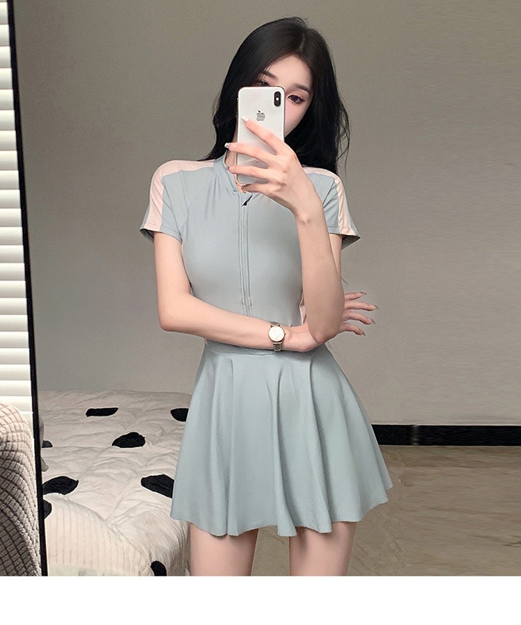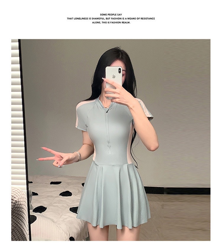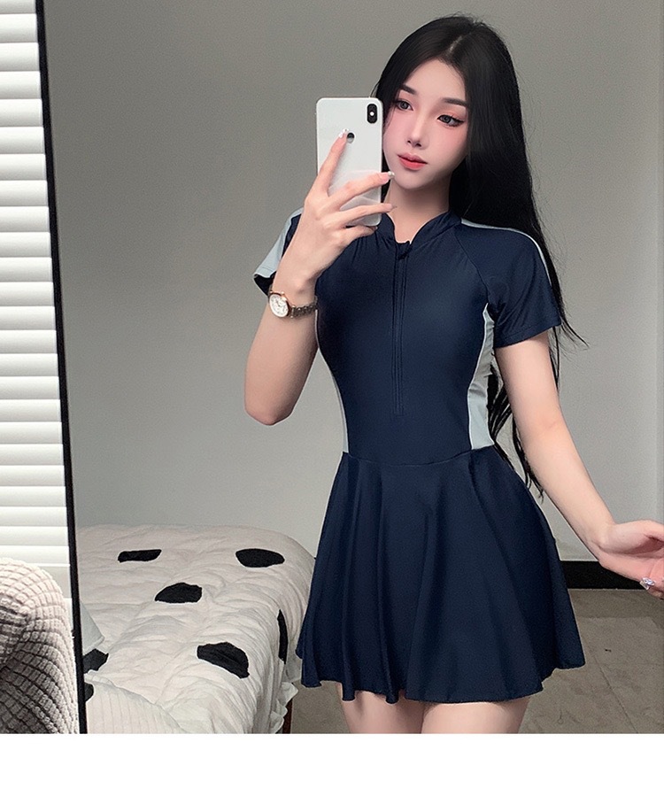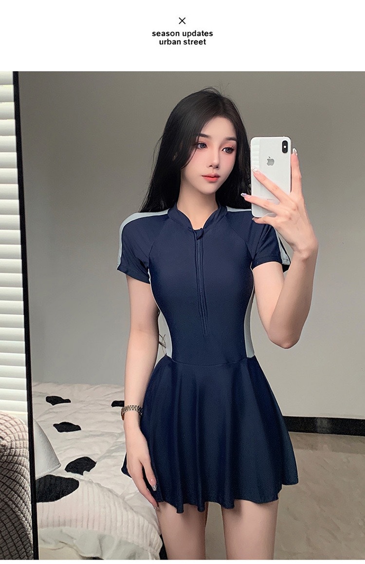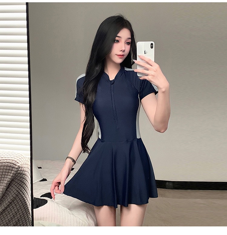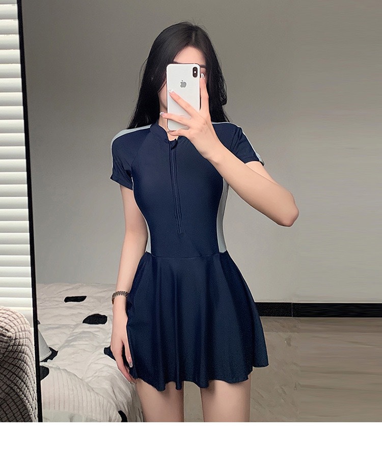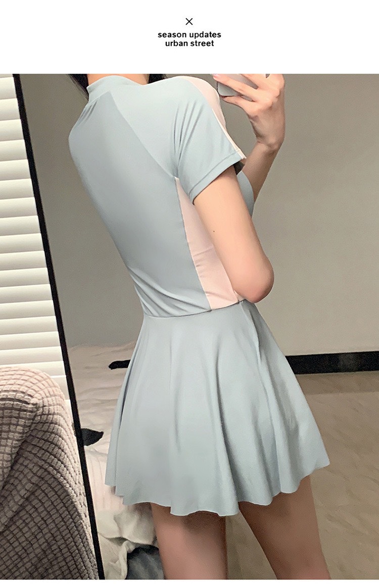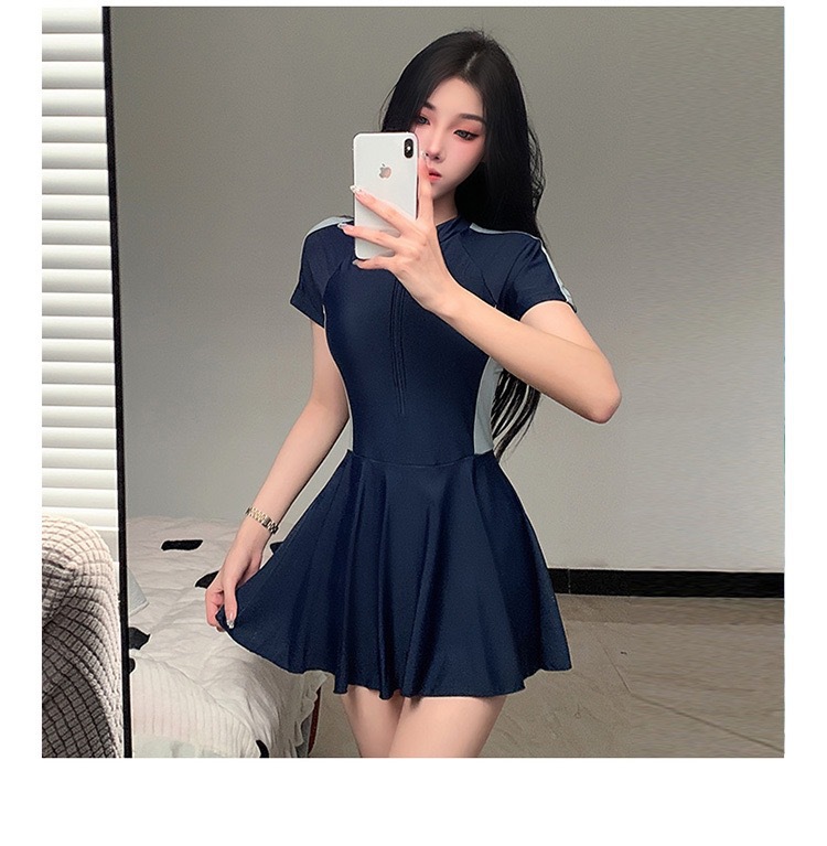 新作水着 レディース ワンピース型 控えめ 学生風 スカート型 着痩せ効果 韓国風 インス風 スポーツ風 超可愛い 温泉水着