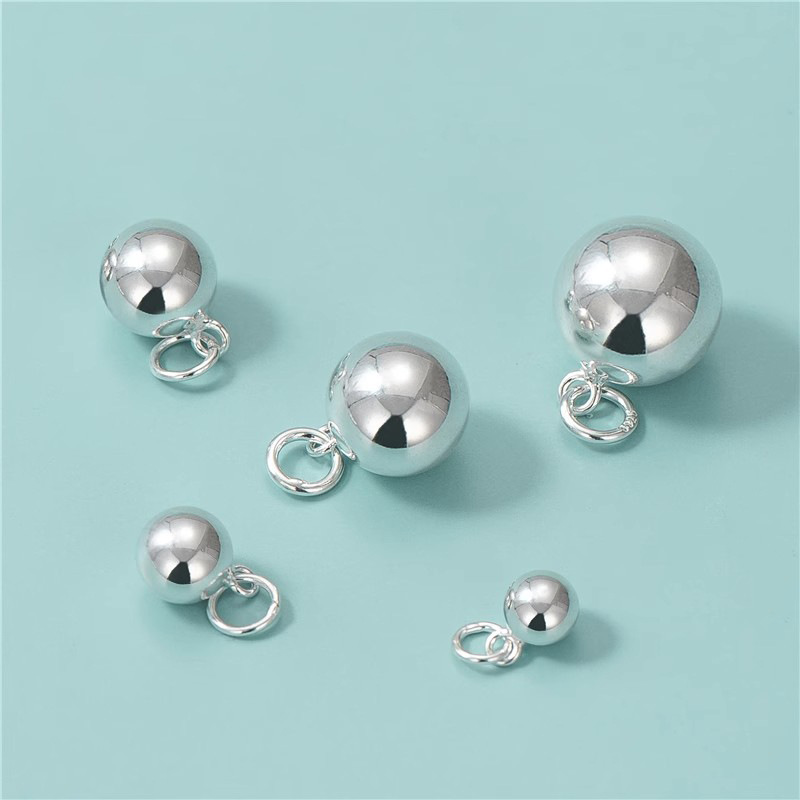 S925スターリングシルバー光沢ラウンドボールペンダントアクセサリーブレスレットネックレスペンダントdiy手作り編みビーズアクセサリー材料