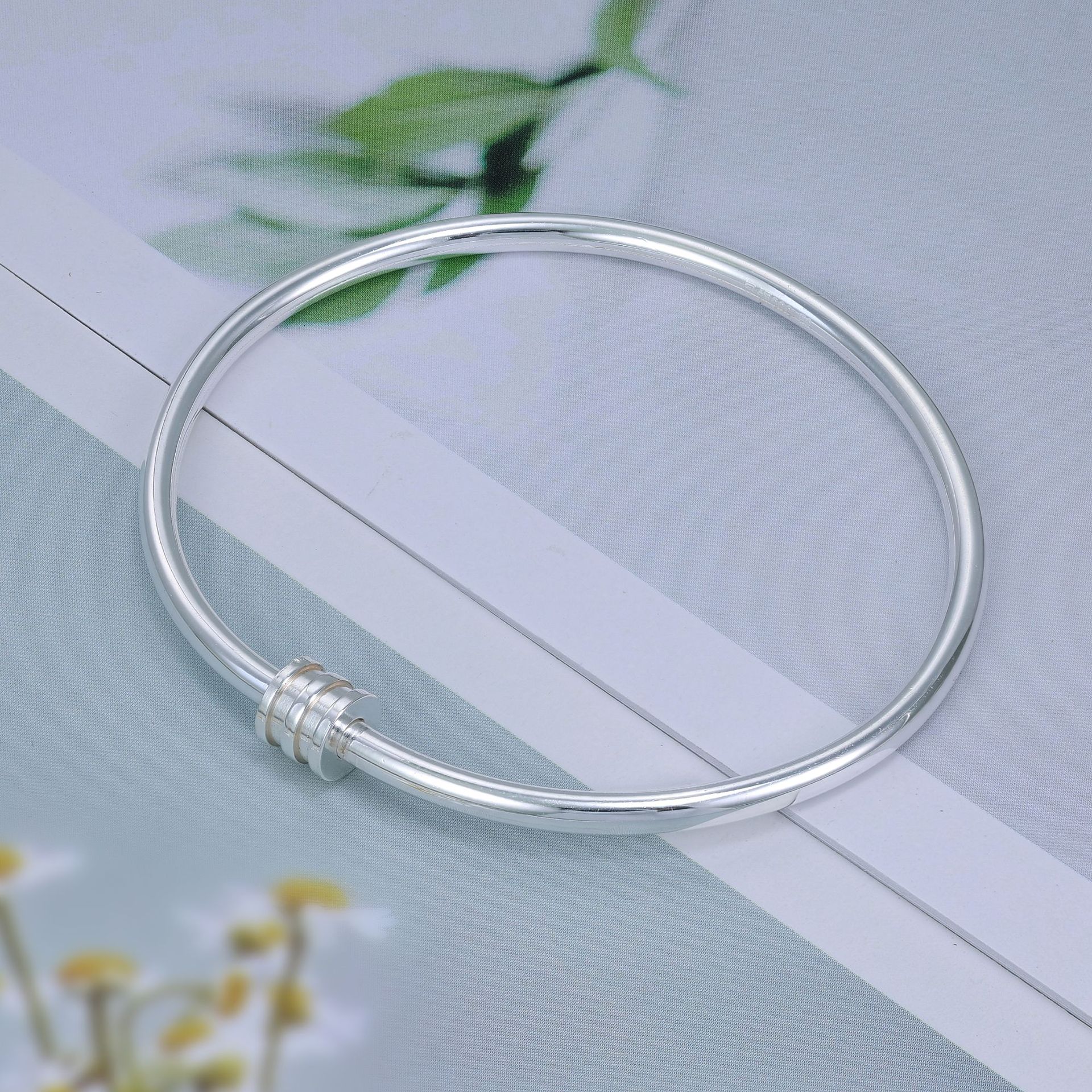 S999足银时尚简约开口螺丝手镯 简约DIY款螺纹活动手环厂家大批量