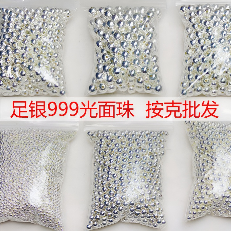 シルバービーズ、ルースビーズ、S999純銀、シルバーアクセサリーパーツ、純銀DIYパーツ、シルバービーズ、丸ビーズ、クリスタルジュエリー、スペーサービーズ
