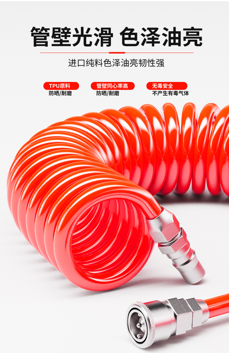 ゴールデンガス 6*4PU スプリングスパイラルチューブ防爆チューブエアポンプエアコンプレッサー空気圧チューブ 3.6.9. 12.15m