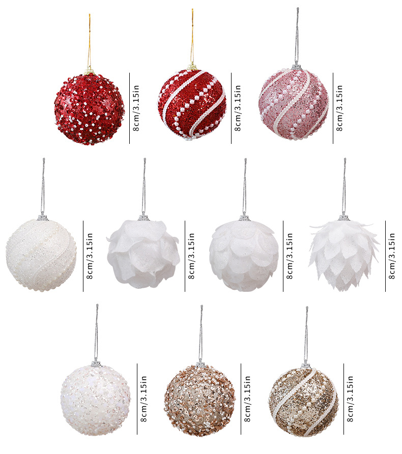亚马逊热销 8CM圣诞球珍珠泡沫球圣诞树挂件装饰彩球沾粉球挂饰