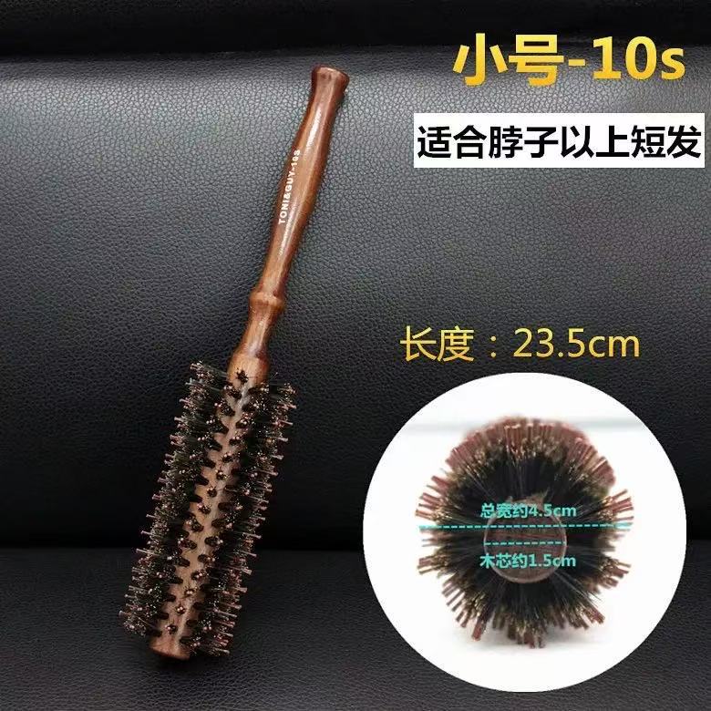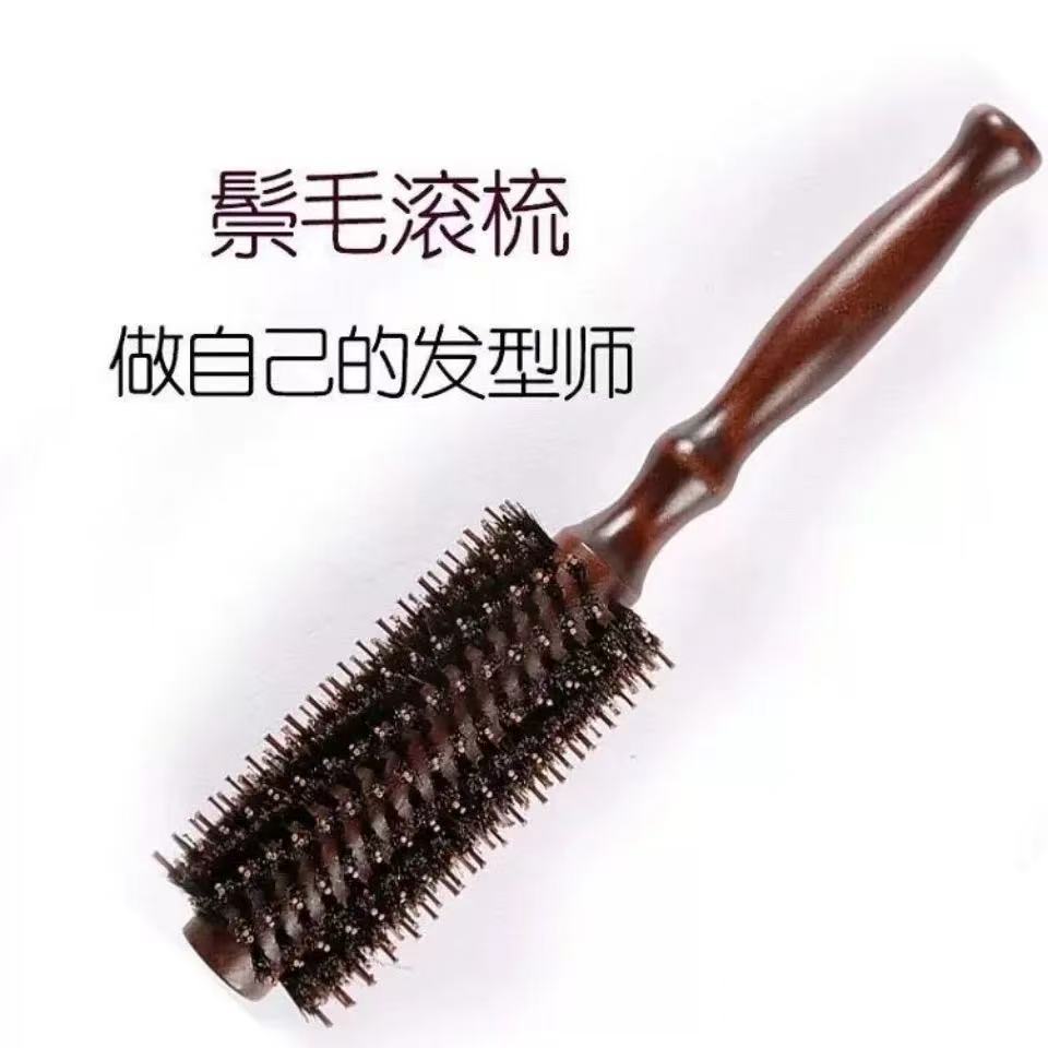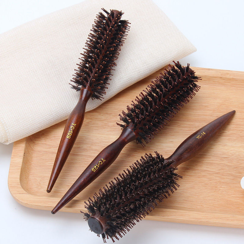 ヘアサロン木製コーム、カーリングヘアコーム、ヘアスタイリング猪毛木製コーム、円筒ヘアコーム、男性用および女性用ローリングコーム