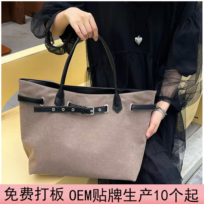 秋冬新款休闲大容量包包时尚单肩托特包百搭气质通勤帆布包子母包