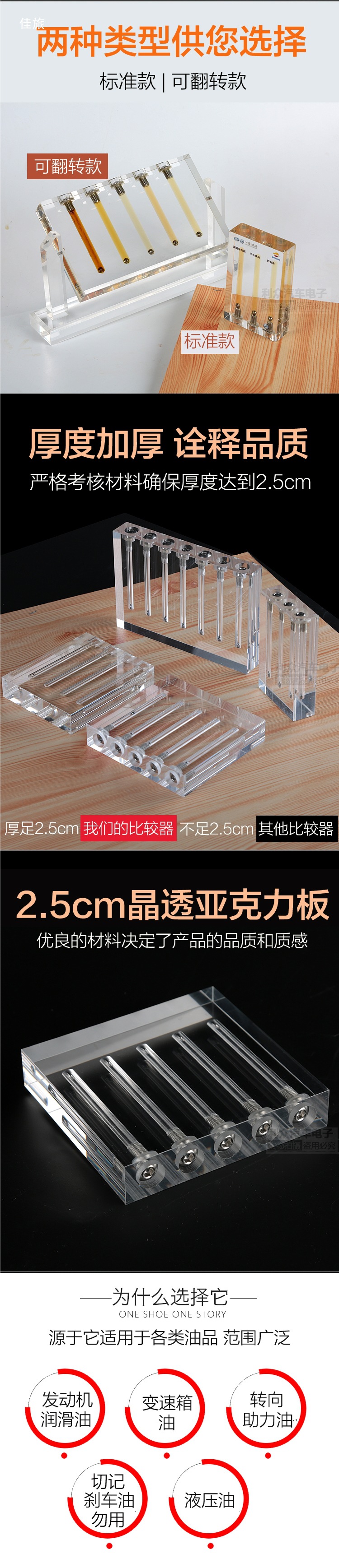 自動車用オイル油質コンパレーター リバーシブルアクリルガラス デモンストレータースタンド 油粘度試験ツール コンパレーター