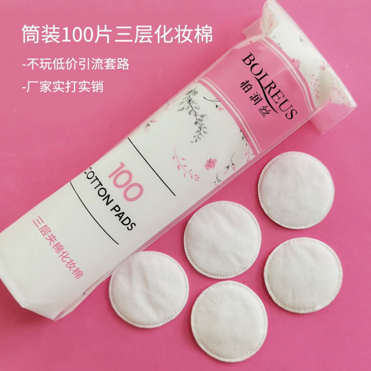 Borunsi 三層化粧綿ラウンドエッジコットンパッドキルティングメイク落としコットンバッグ化粧綿工場加工直販