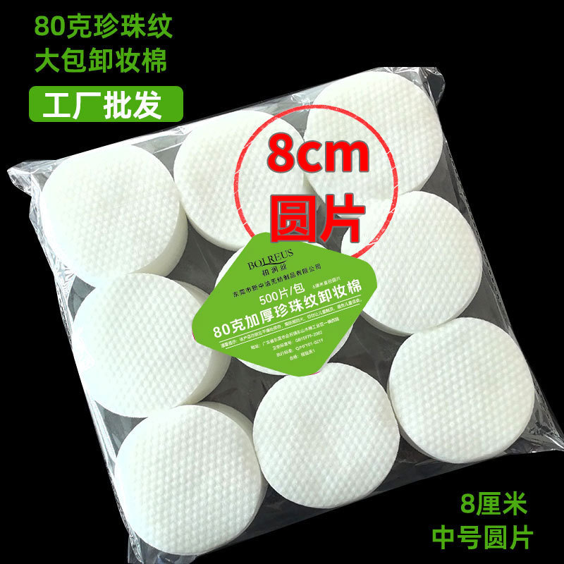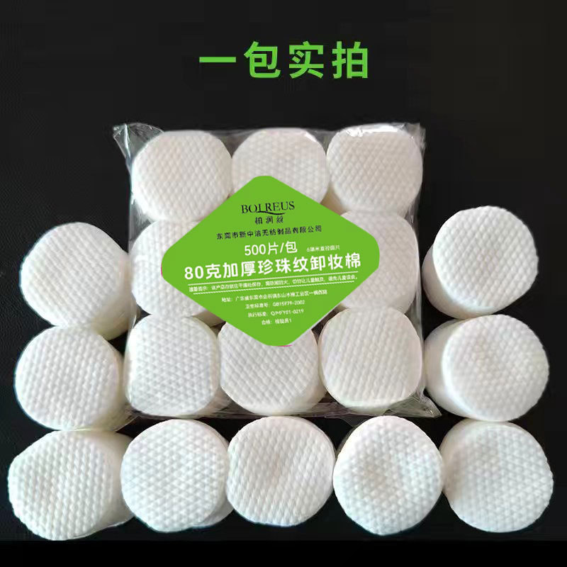 80グラムの真珠の紋様の6センチの円形の化粧を落とす綿の切れの500枚の1包みの工場は化粧を落とす綿を卸売りします。