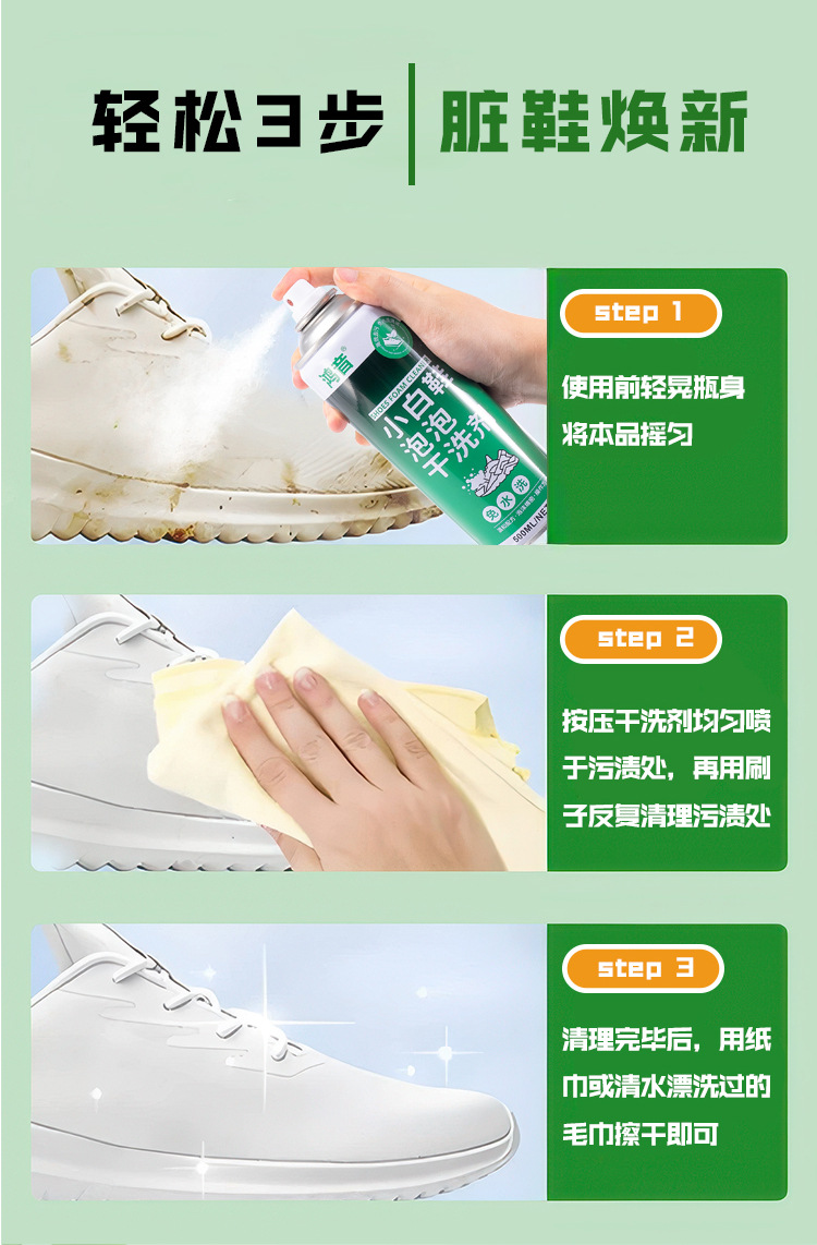 现货代发小白鞋清洗剂洗运动鞋子神器去污免水洗小白鞋泡泡干洗剂