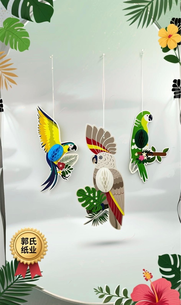 スポットインコハニカムチャームハワイアン大きい口鳥パーティーインコハニカム幼稚園教室飾り道具