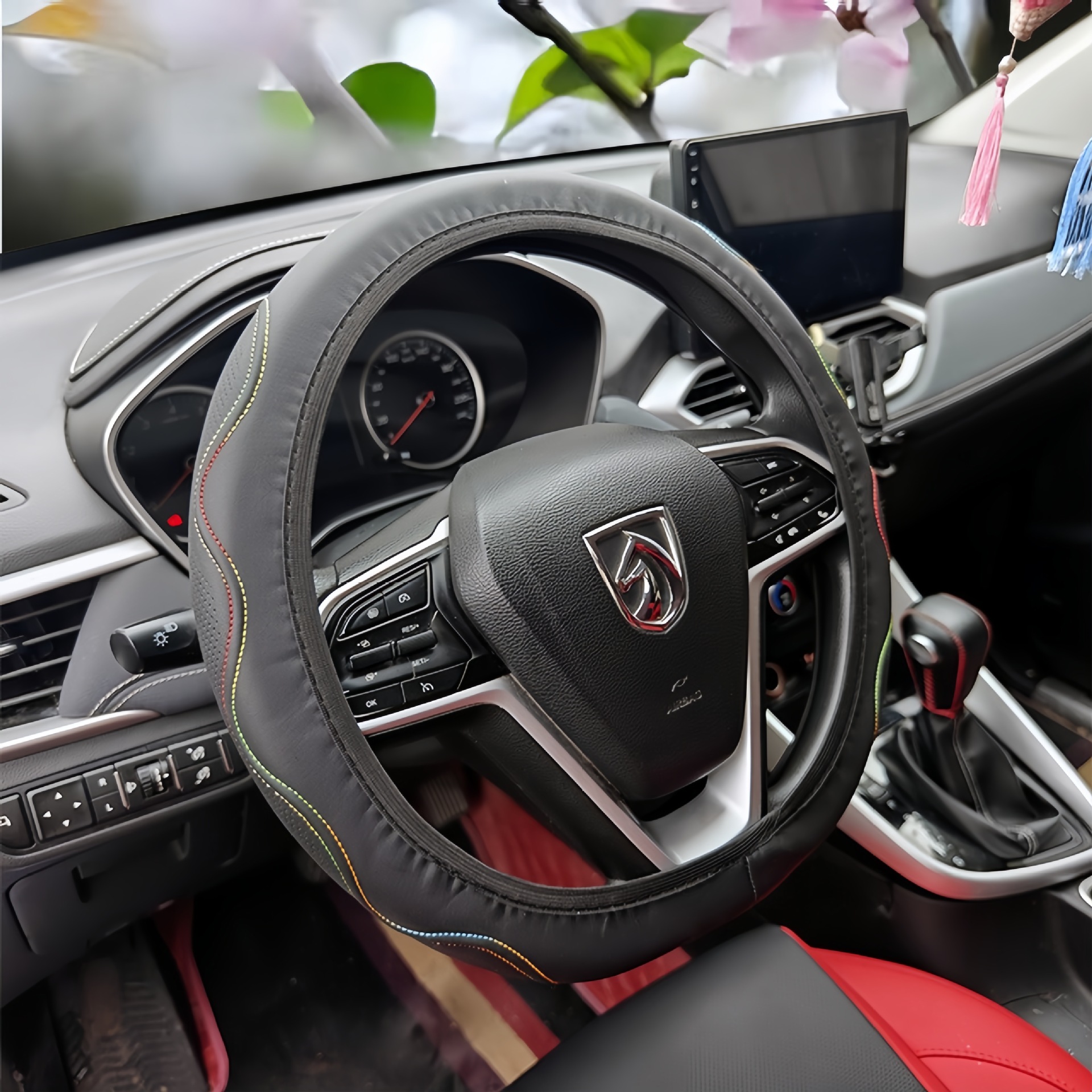 インナーリングなしステアリングホイールカバークロスボーダー車の小さな正方形ステッチハンドルカバー滑り止め吸汗性オールシーズン車のインテリア