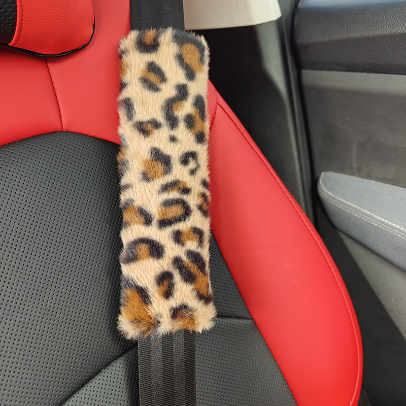 クロスボーダーぬいぐるみ風リムレスハンドルカバー、レオパード柄車用滑り止め吸汗ハンドルカバー
