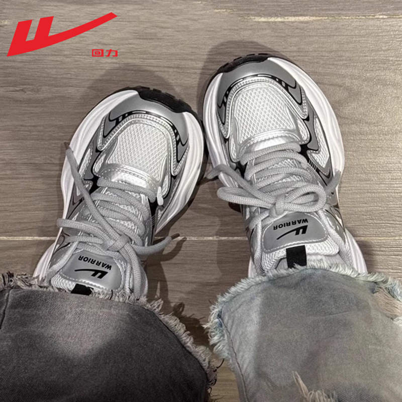 回力女鞋银色老爹鞋女2025新款爆款秋季透气厚底韩版情侣休闲鞋B