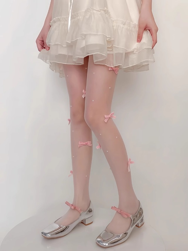夜间教习室蝴蝶结丝袜白色洛丽塔连裤袜珍珠袜子超薄夏季纯欲白丝