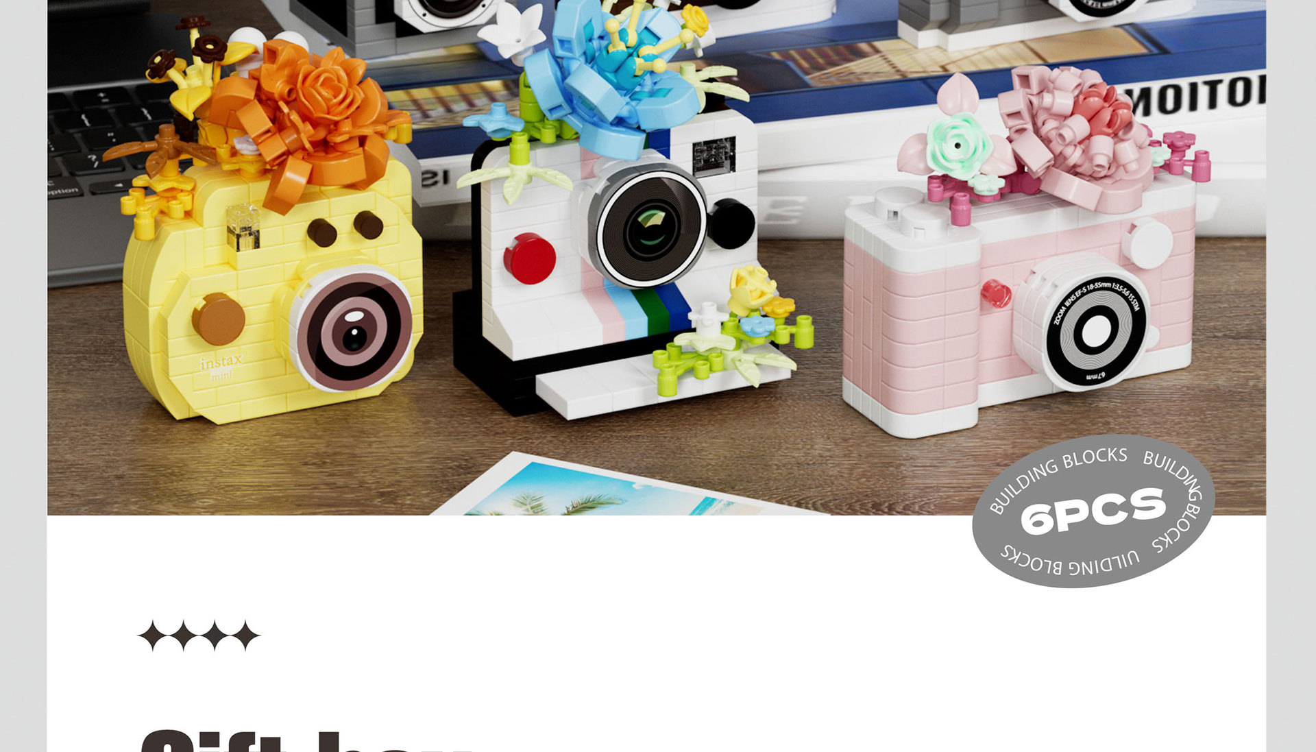 【批发代发】镜中花相机微颗粒积木拼装玩具摆件女孩生日便宜
