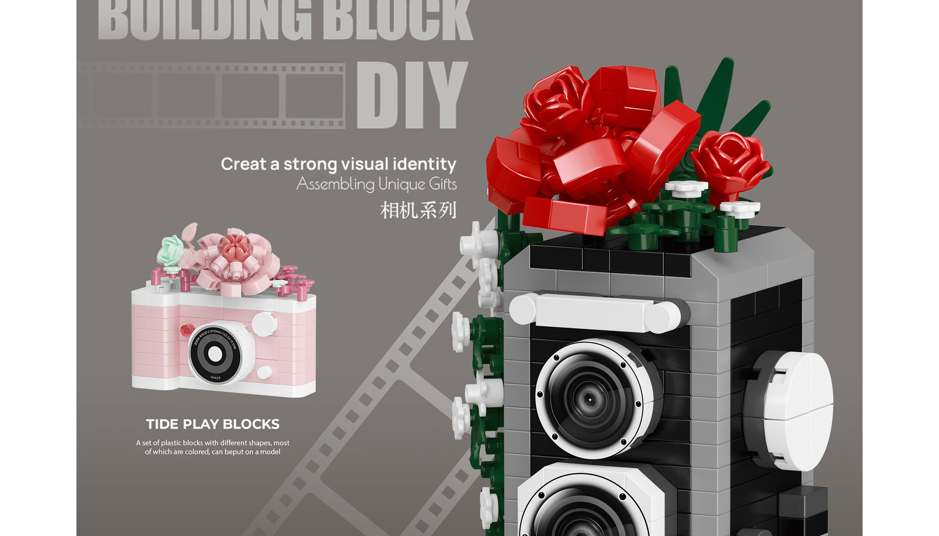 潮乐创镜中花相机系列积木兼容乐高儿童益智拼装桌面摆件节日礼物