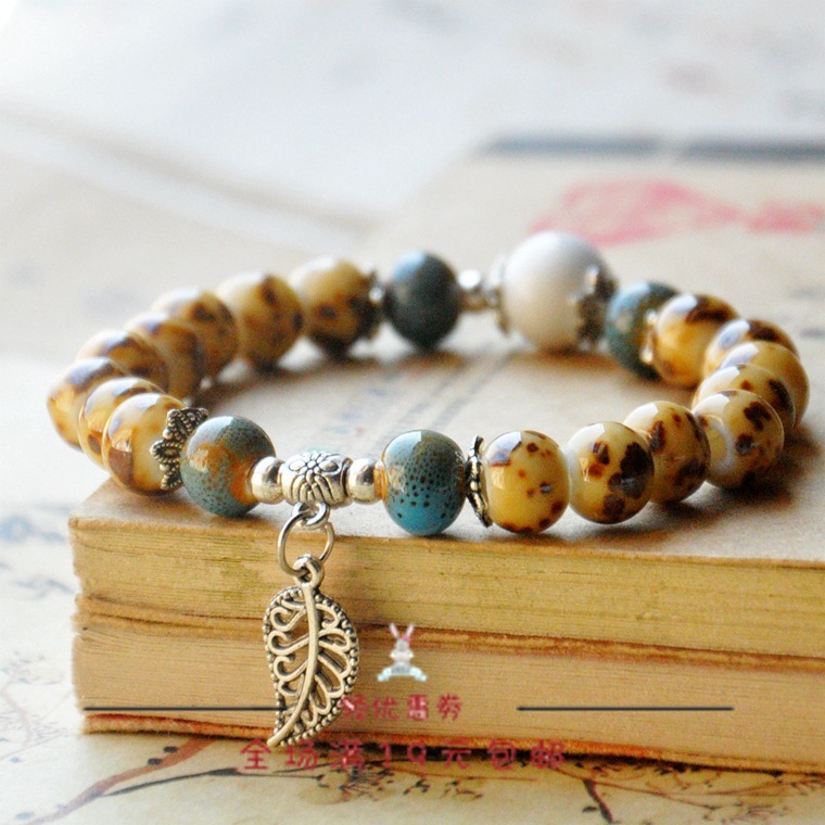 陶磁器のアクセサリーの小さい清新なブレスレットは学生の女性のプレゼントの露店の商品の供給源の新型の民族風の古風を調節することができます。