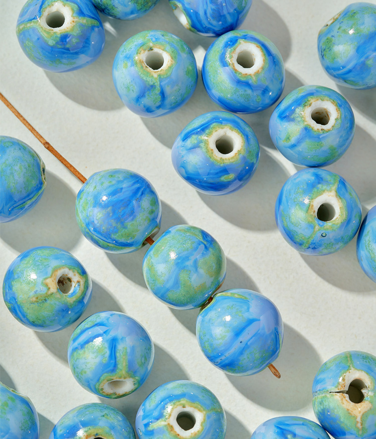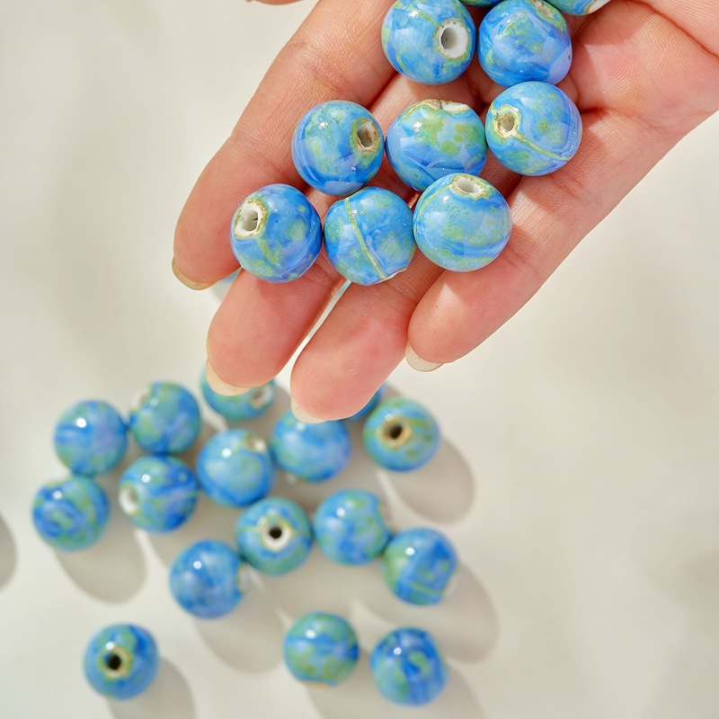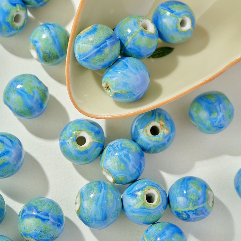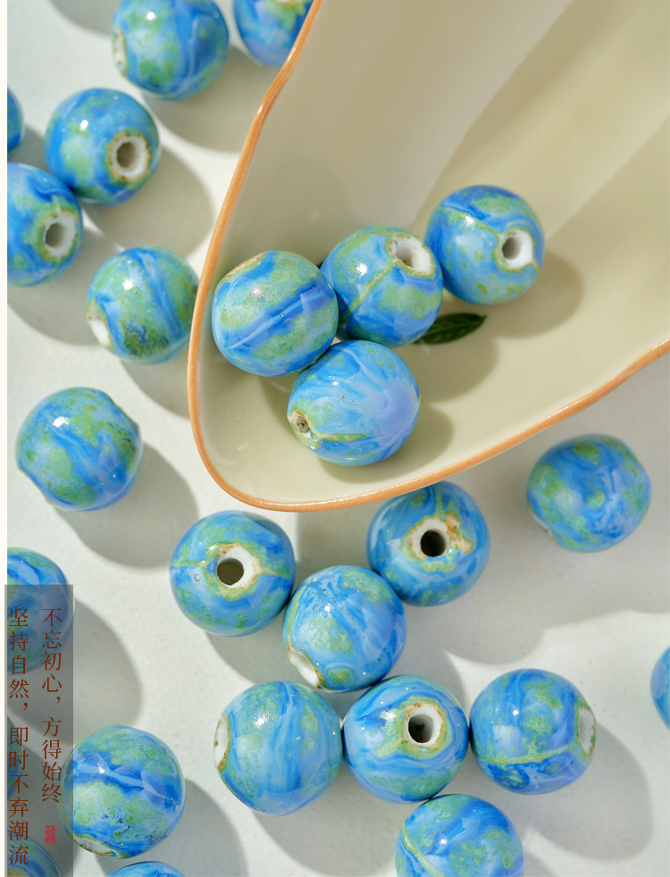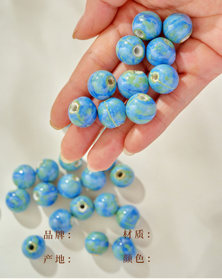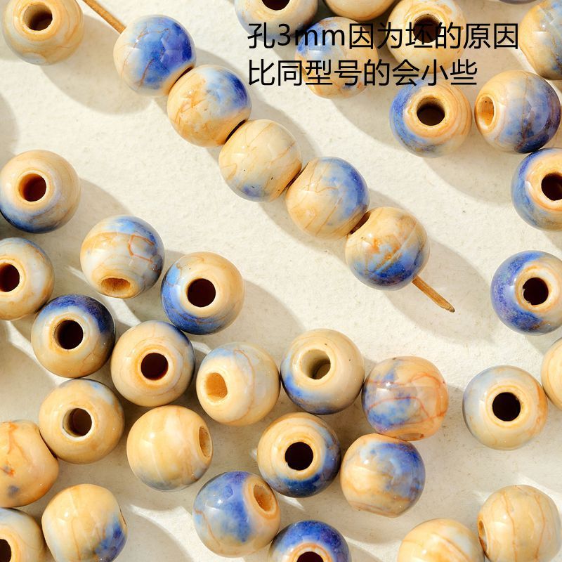 新品颜色陶瓷散珠蓝色圆珠大孔瓷珠半成品学生女手工diy手链配件