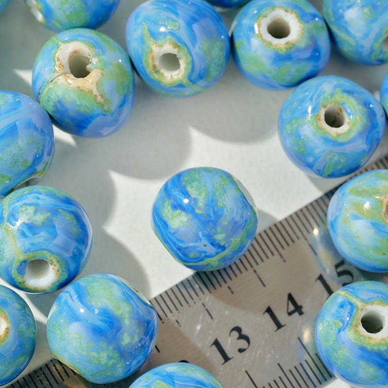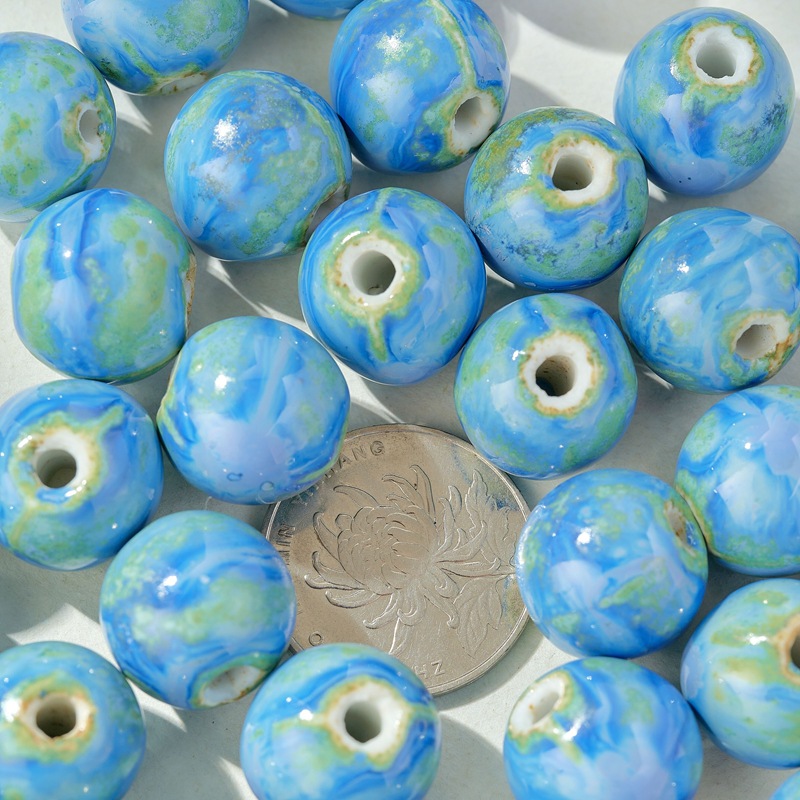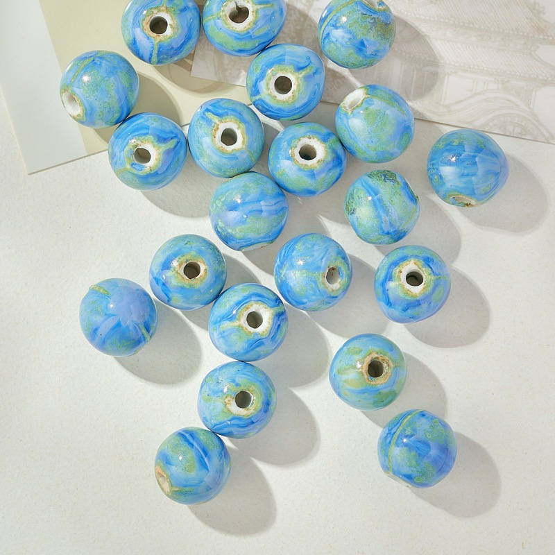 セラミックルースビーズブルーラウンドビーズ大穴磁器ビーズ半完成学生女の子 diy ブレスレットアクセサリー 16 ミリメートルラウンドビーズビーズ