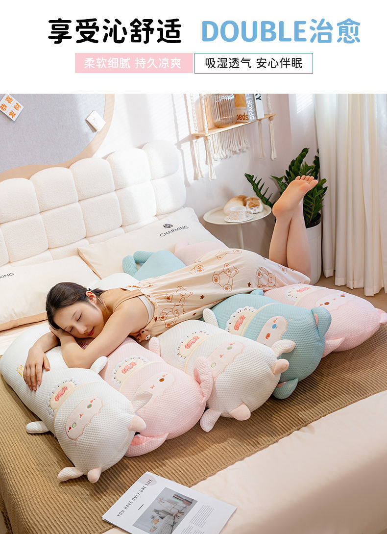 寝室用の長い枕、ベッド用枕、横向き寝用の脚枕、ベッドサイドクッション、取り外して洗える漫画の睡眠枕