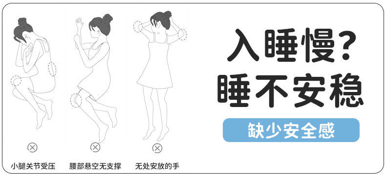 妊婦さんや女性が横向き寝に使える、取り外して洗えるアイスシルク素材の長い枕。大人用、脚を挟むタイプで通気性も良い。