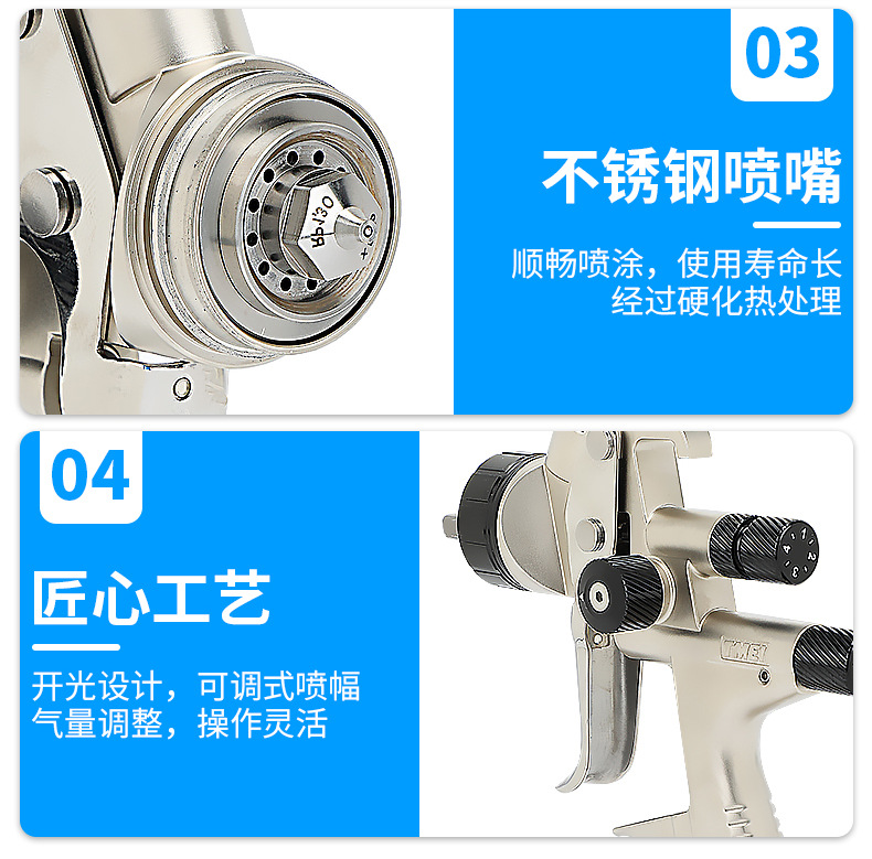 高雾化气动喷漆枪、低压高雾化喷漆枪、精细雾化气动喷枪、高流量气动喷漆枪、可调气压喷漆枪、1.0mm/1.3mm/1.5mm 气动喷漆枪、重力式气动喷漆枪、轻便型气动喷漆枪、汽车气动喷漆枪、家具气动喷漆枪、工业气动喷漆枪、五金件气动喷漆枪、机械外壳喷漆枪、设备机身喷漆枪、五金配件喷漆枪、集装箱涂装喷漆枪、家具修补喷漆枪、玩具翻新喷漆枪、栅栏 / 门窗小面积补漆枪