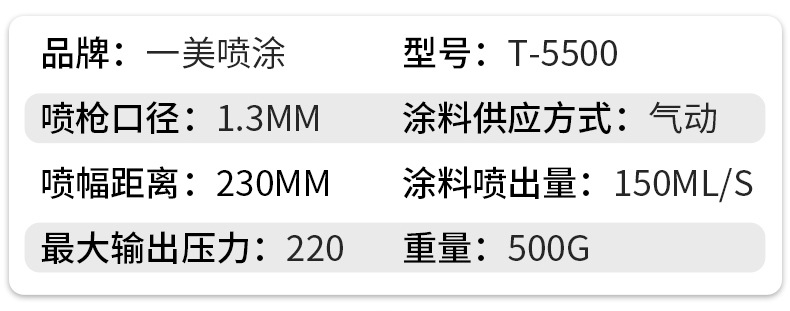 喷漆枪便携式高雾化气动油水两用汽车修补喷漆枪T-5500型工业级