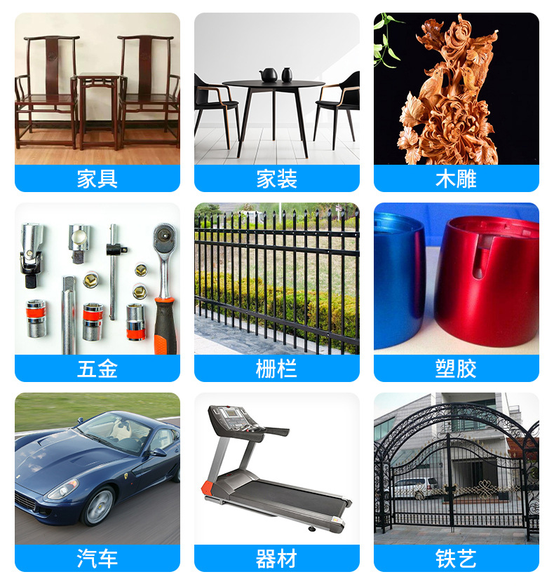 适用范围 轻工业、模型、汽车修补、木工/家具、金属、塑料