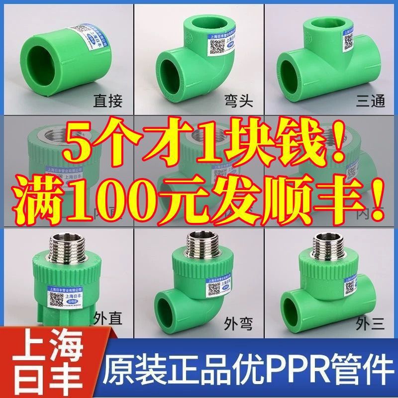 上海日丰水管配件接头内丝外丝直接弯头三通热熔管件大全绿色