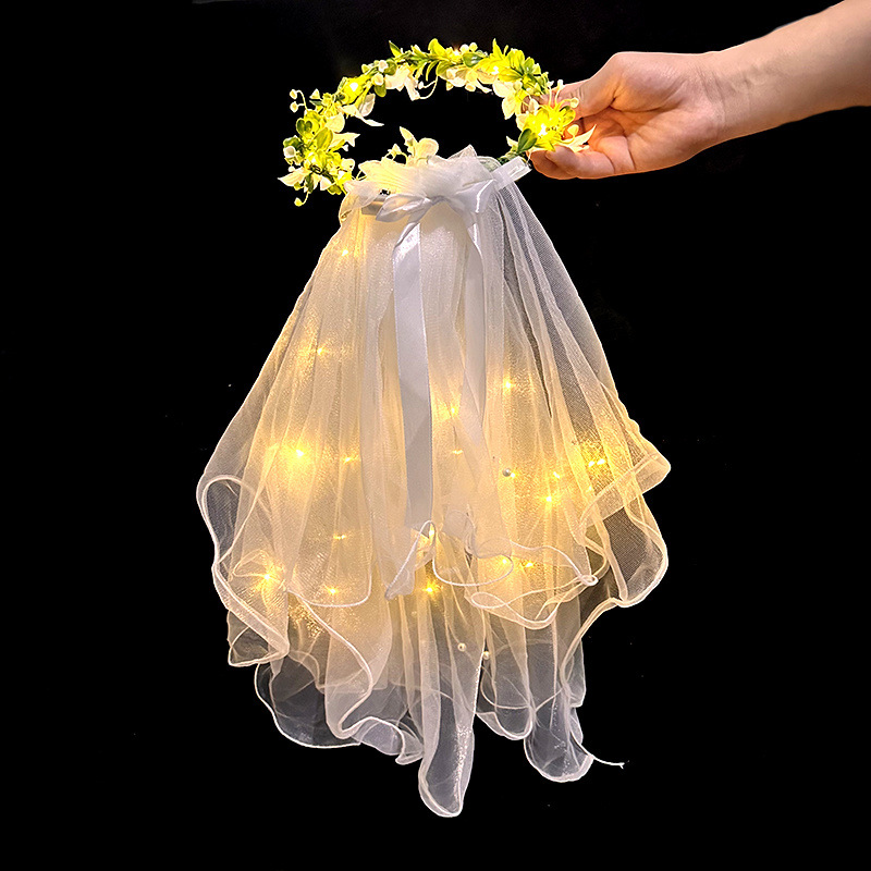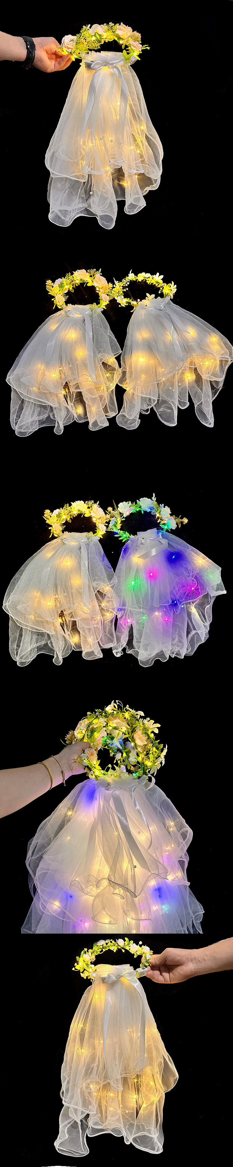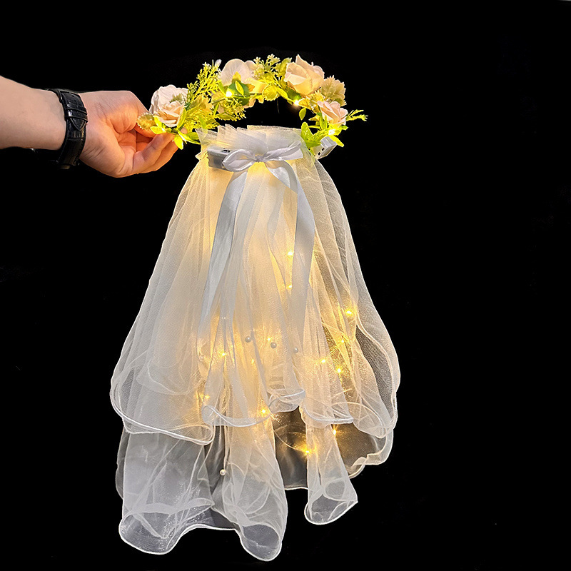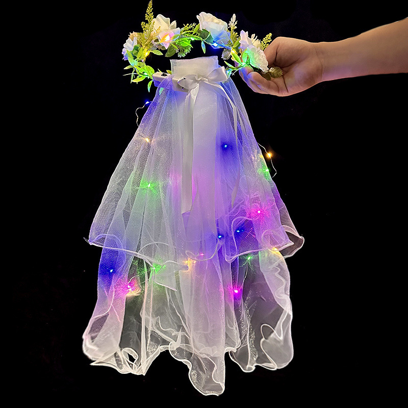 中国のバレンタインデーベールインターネットセレブフォレストガーランドタッセルクラウンライトリボン付きプリンセス発光ヘッドドレスナイトマーケットスーパーフェアリー