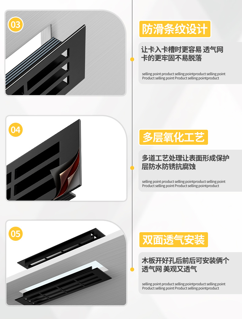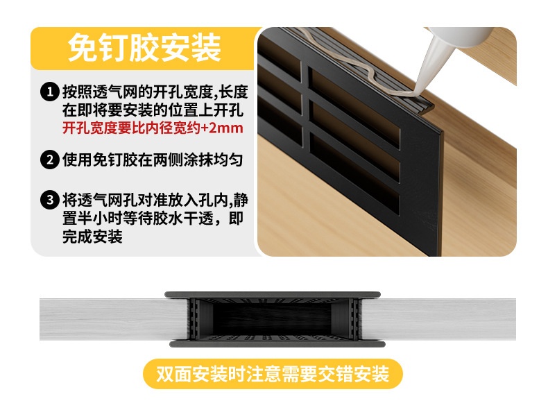 铝合金分体透气网极简双面透气网橱柜二合一透气孔简约分体透气孔