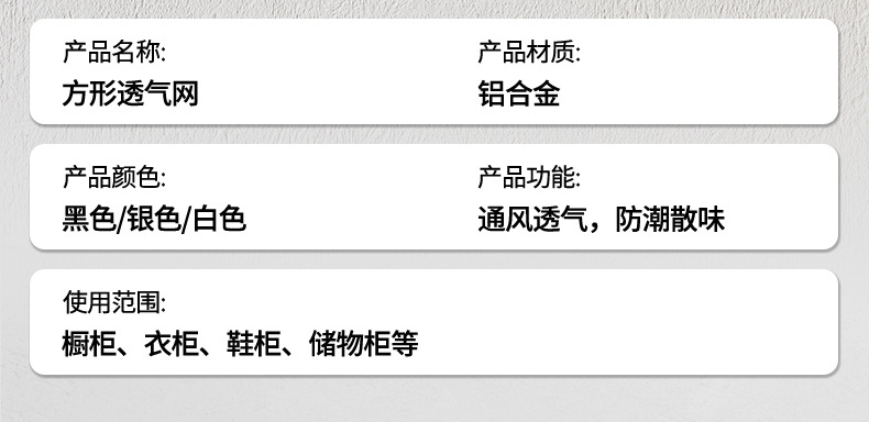 跨境热销橱柜透气网厨房燃气表柜门通风网格栅免打孔长方形透气孔