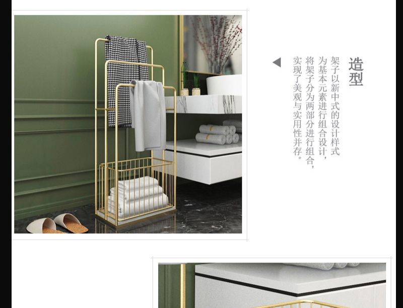 JUb 【新中華デザイン】ライト高級北欧タオルラック 床置き浴室収納 タオルラック 洗面台 ホーム