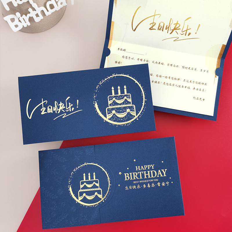 Wenpai ホットスタンピングプロセスビジネススタッフ立体誕生日グリーティングカードシングルページクリエイティブありがとう誕生日ケーキカード