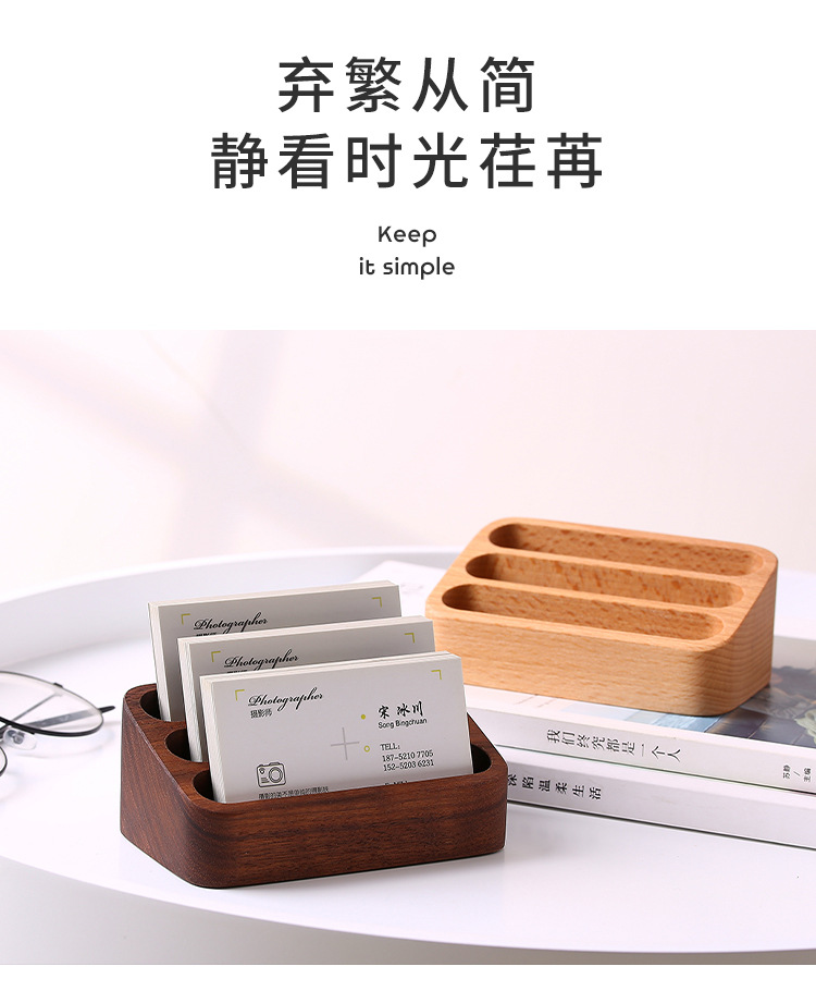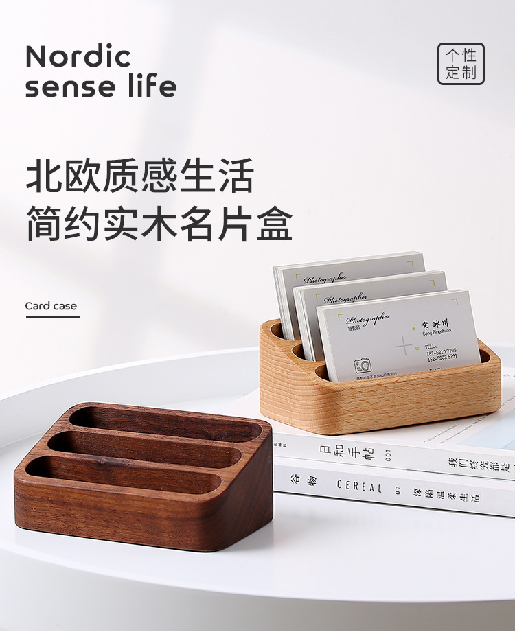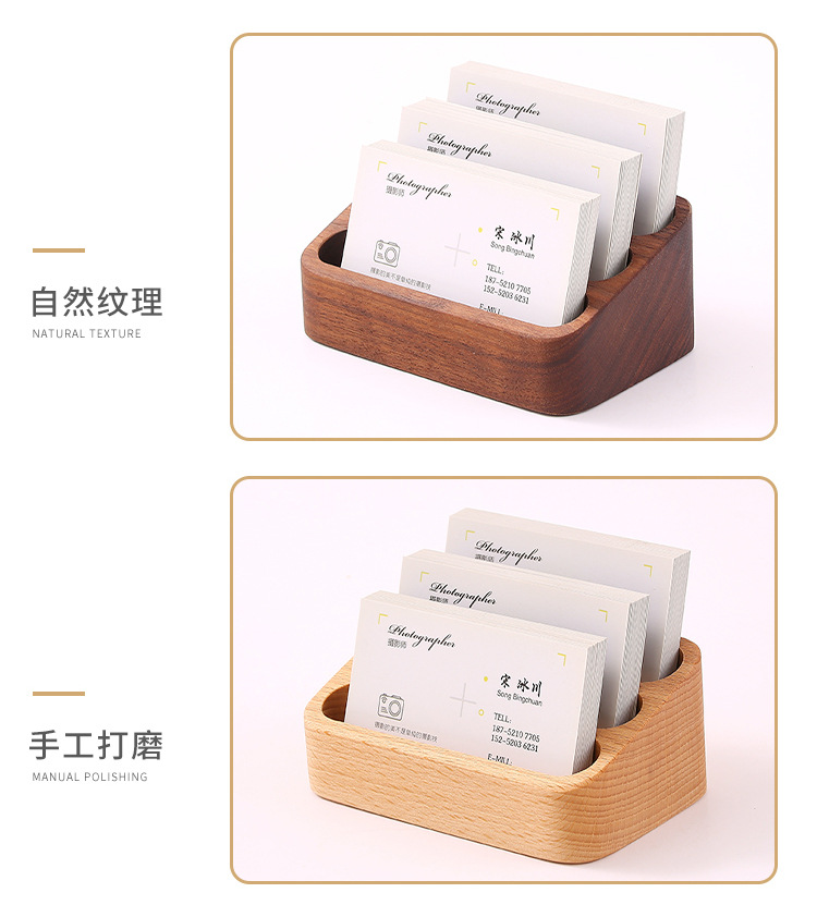Wenpai 無垢材クリエイティブ名刺ボックスデスクトップフロントデスク木製名刺ホルダーテーブルカードビジネス棚