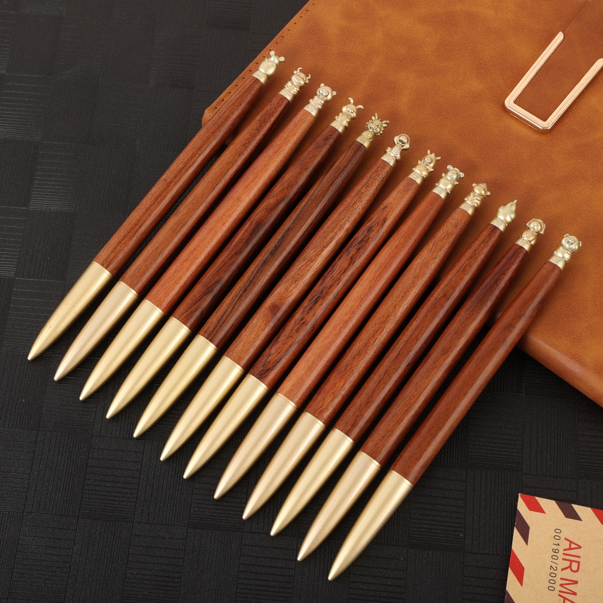 メーカー卸売り黄銅十二生肖輸送中性筆ビジネス事務書写練習字檀木サインペン彫刻字