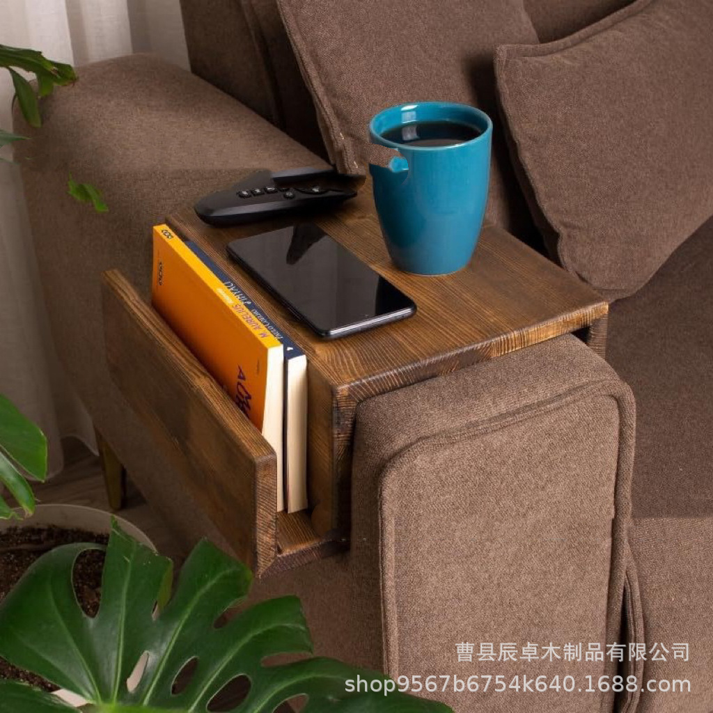 クロスボーダー木製ソファアームレストトレイリビングルーム書籍雑誌ウォーターカップ収納トレイソファアームレストテーブル朝食トレイ