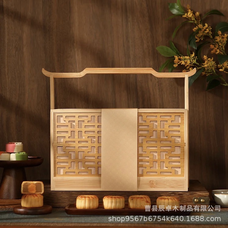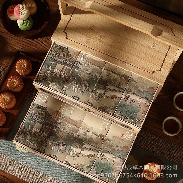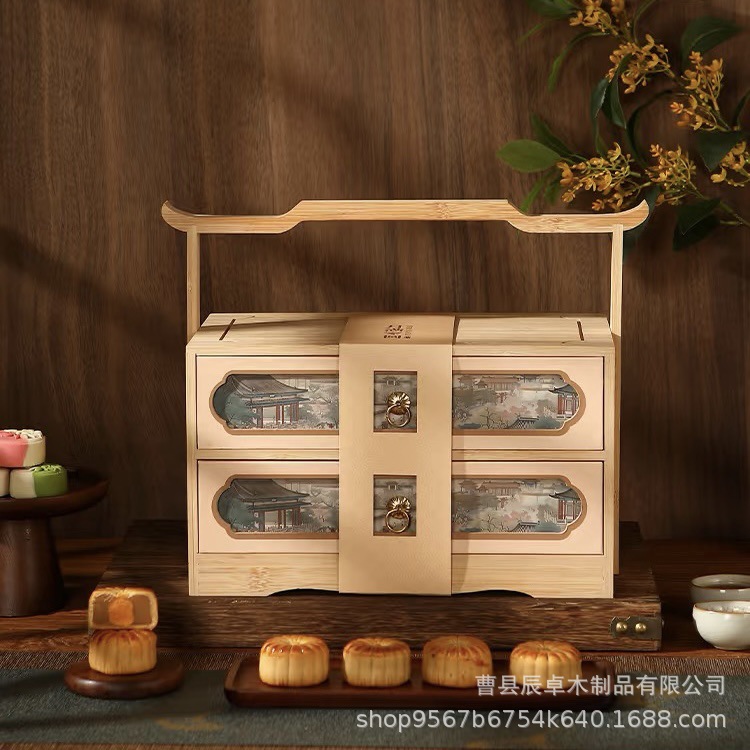 新しい中国風中秋節月餅ボックス木製ポータブル焼き菓子包装箱二層コンパニオンギフトボックス