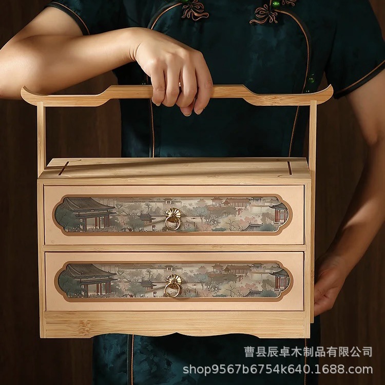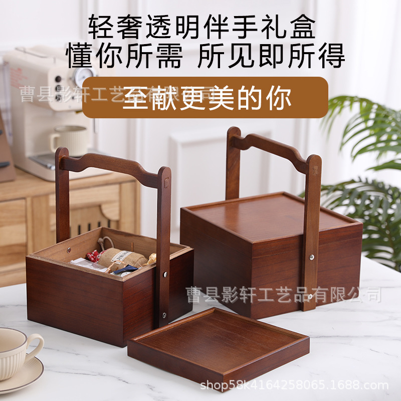 桐材レトロバスケットボックス中秋節端午節春祭り二層ギフト包装木箱ドライフルーツボックスナッツ