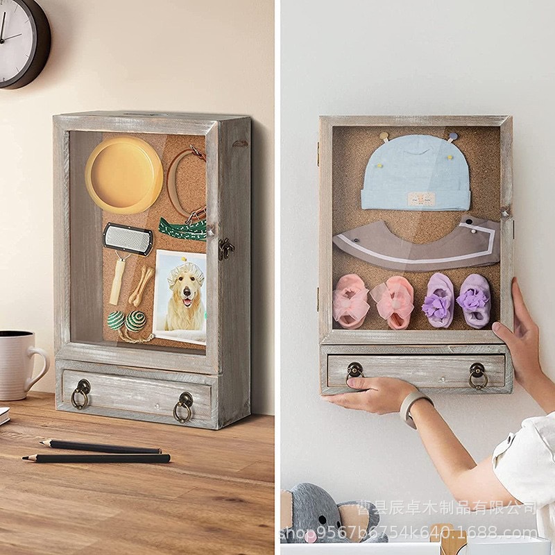 木製フォトフレーム壁掛け DIY 中空ドライフラワーフォトフレームペットのおもちゃ首輪収納ボックス成長記念フォトフレーム