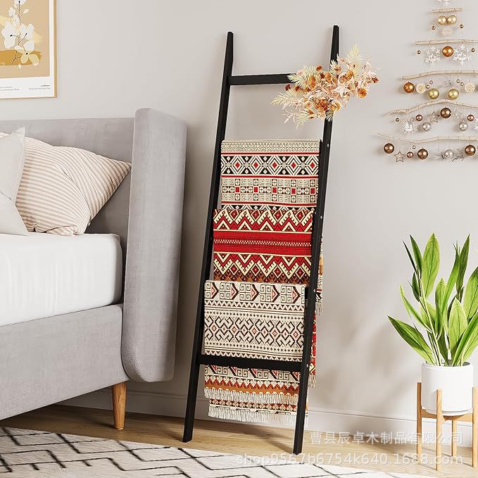 木製はしご収納ラック浴室壁タオル衣類収納ラック無垢材多層ブランケットスカーフラック衣類乾燥ラック