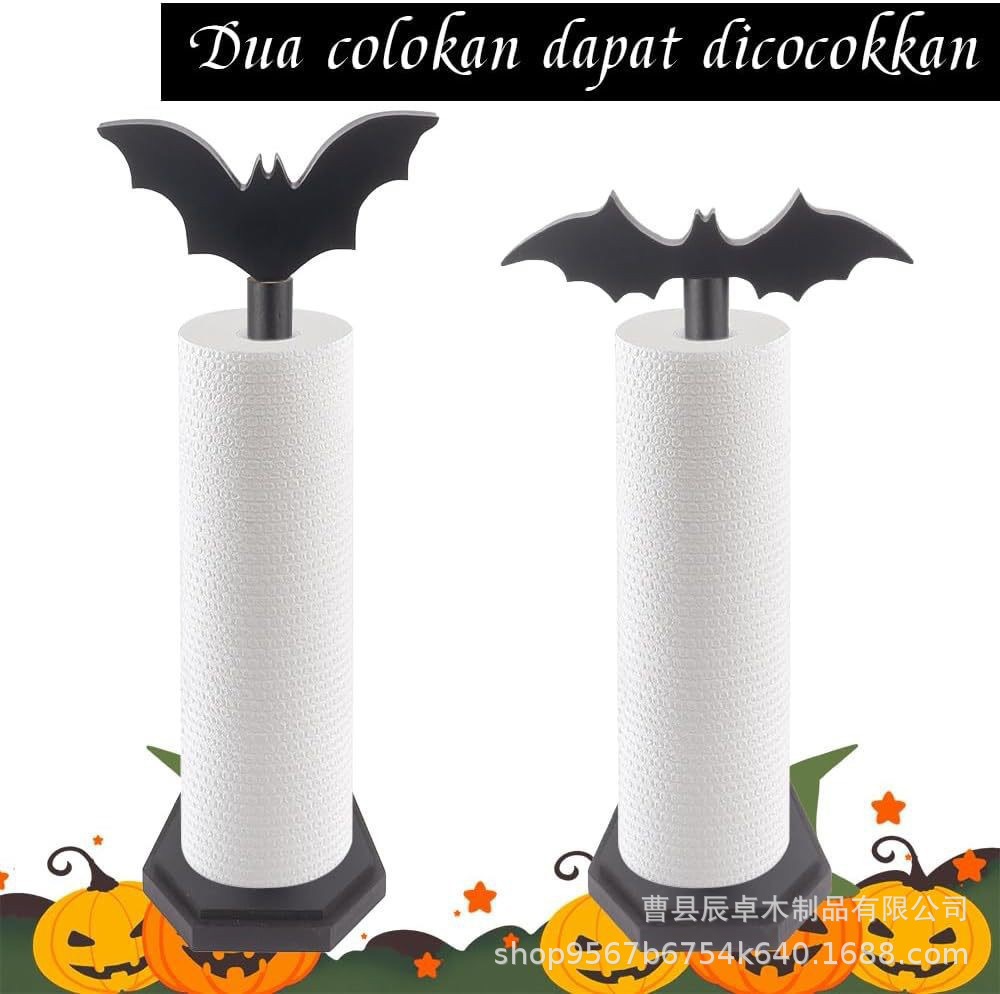 木製ゴシックペーパータオルホルダーバット型ハロウィン装飾ロールペーパーホルダーデスクトップ垂直ナプキンホルダー装飾品
