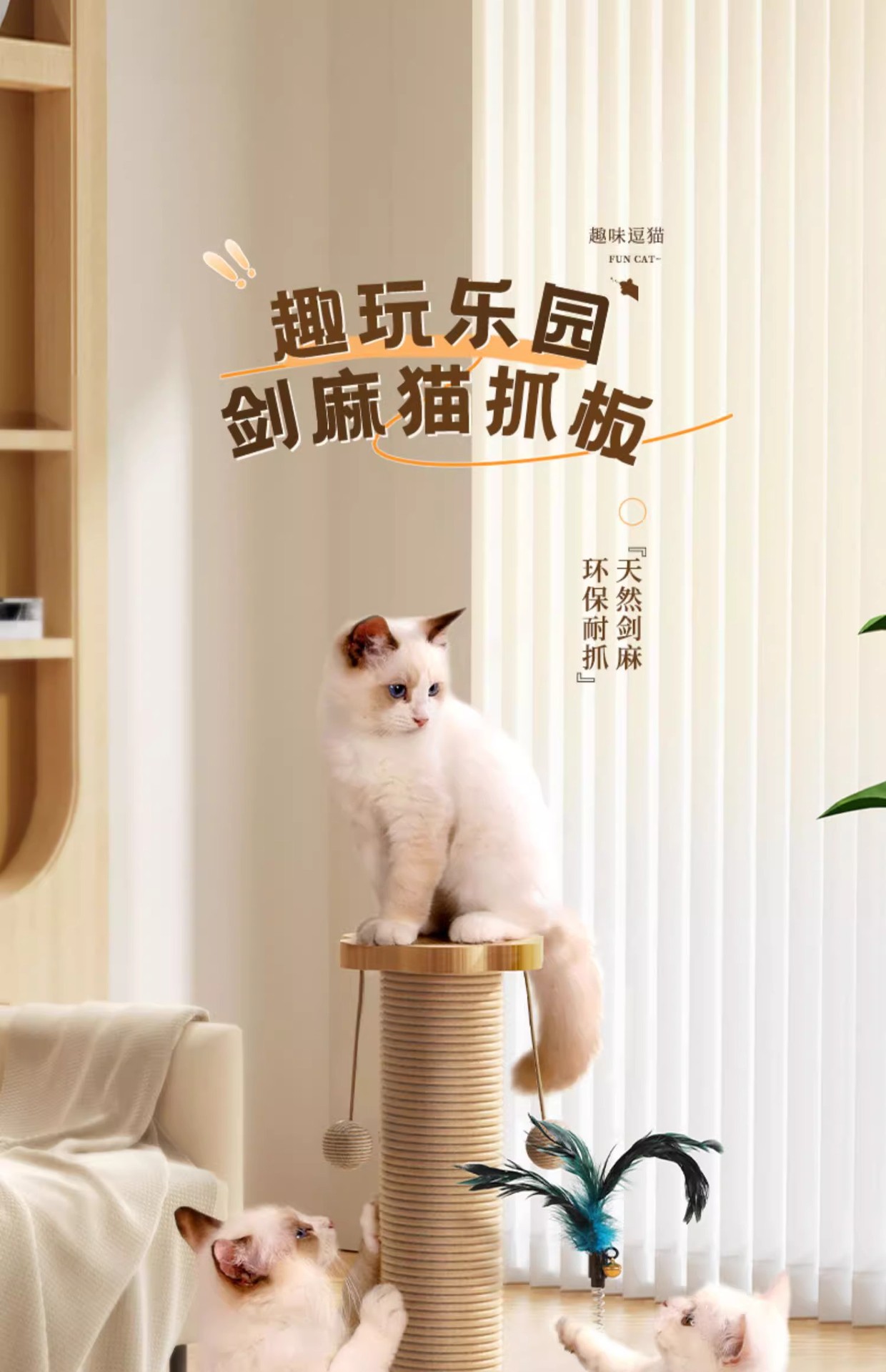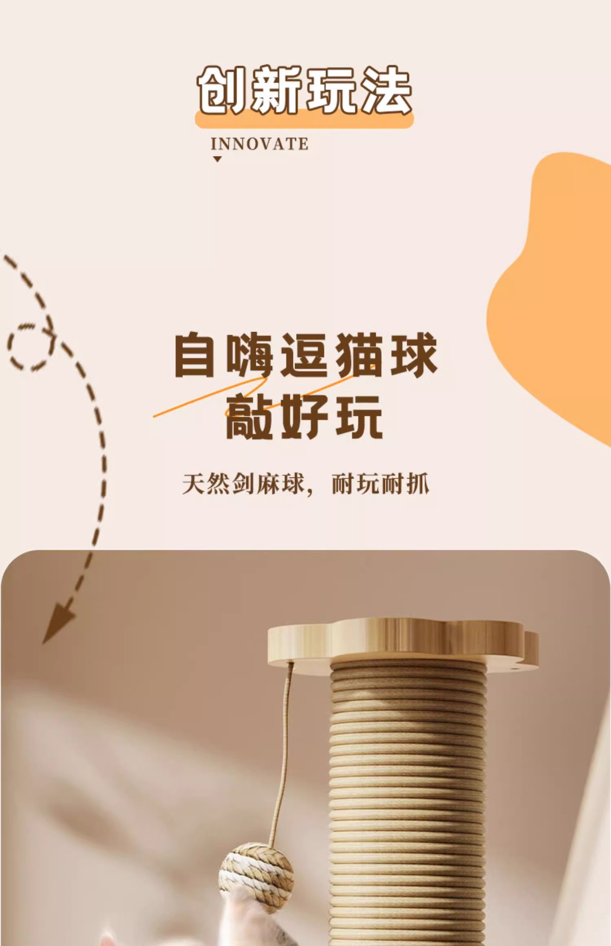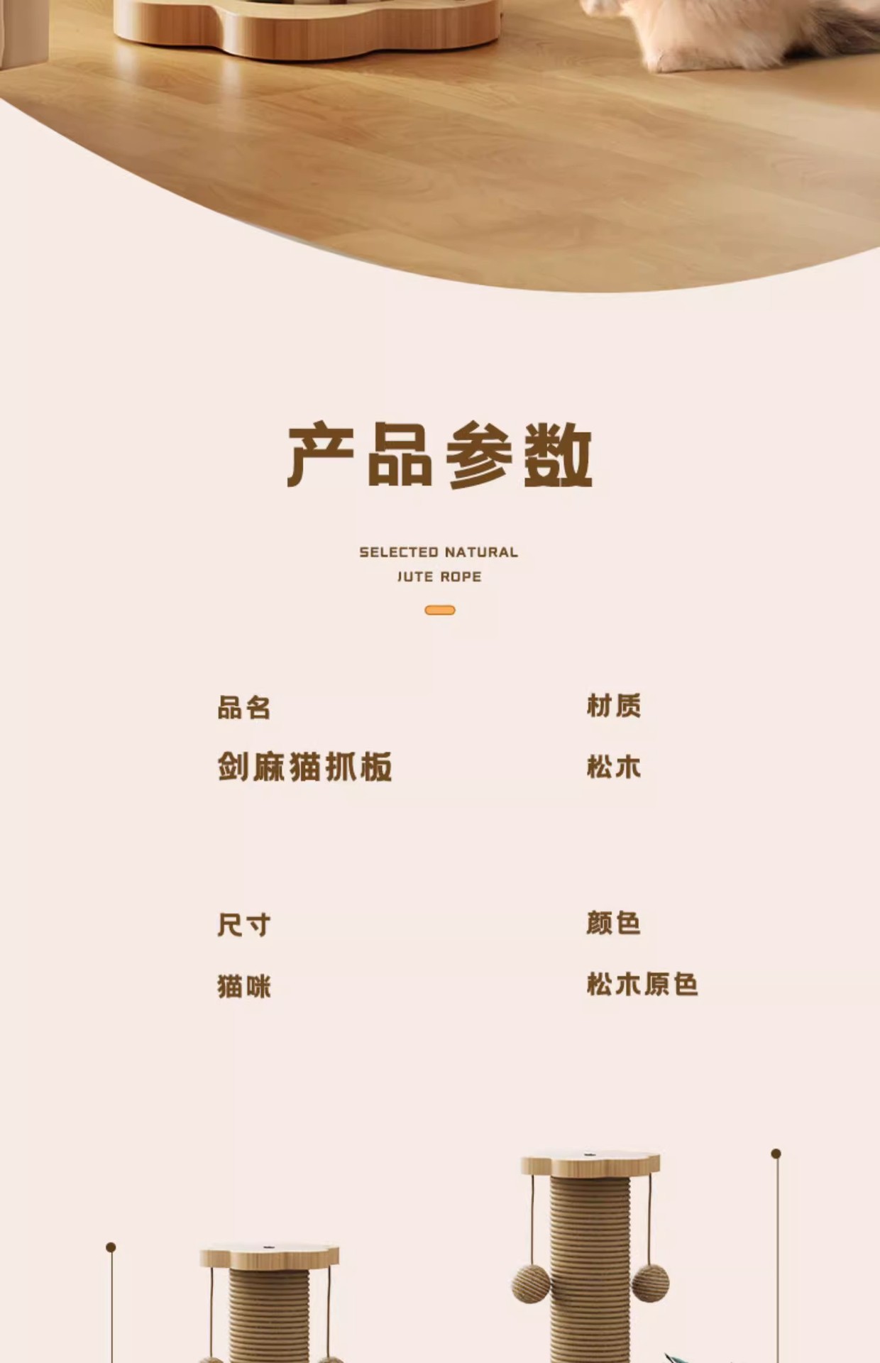 猫咪爬玩具实木耐磨不掉屑麻柱耐抓跨境直供黄麻柱DIY小型猫抓柱