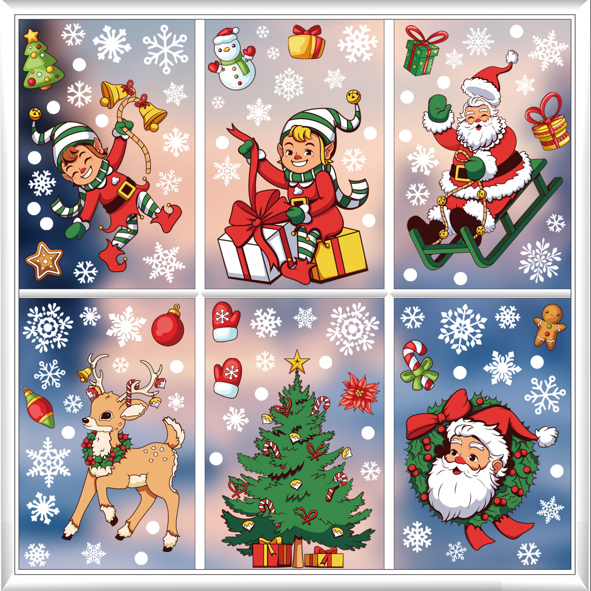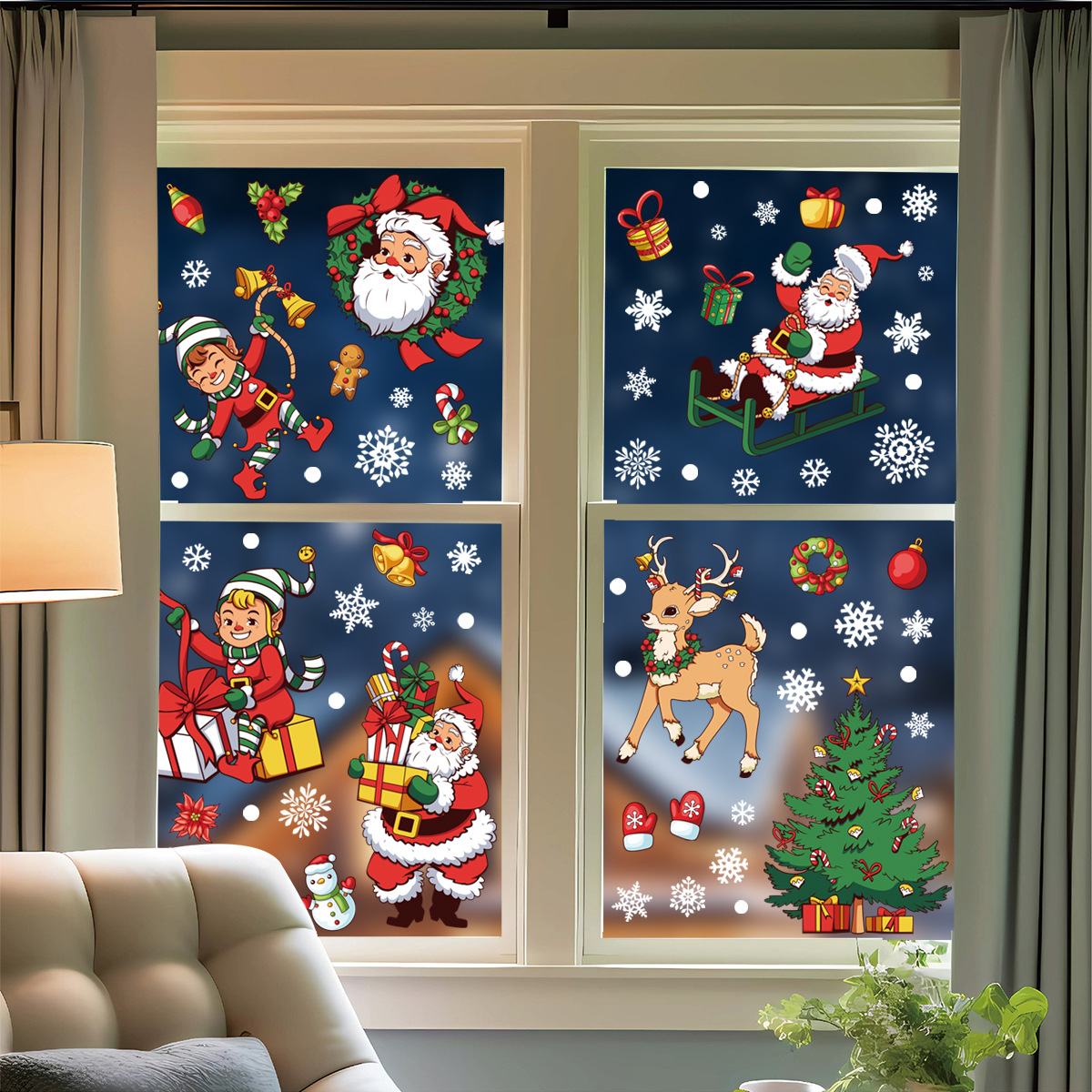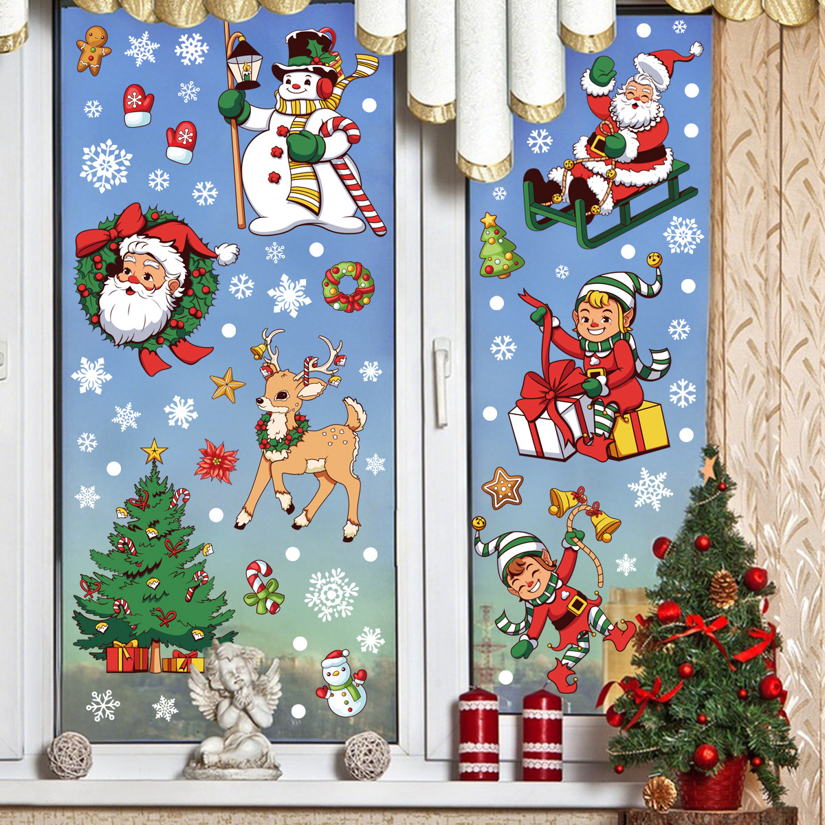 Chuanhao 新しいクリスマスウィンドウステッカーサンタクロースクリスマス雪だるまウィンドウデカールクリスマスホリデー冬ウィンドウステッカー