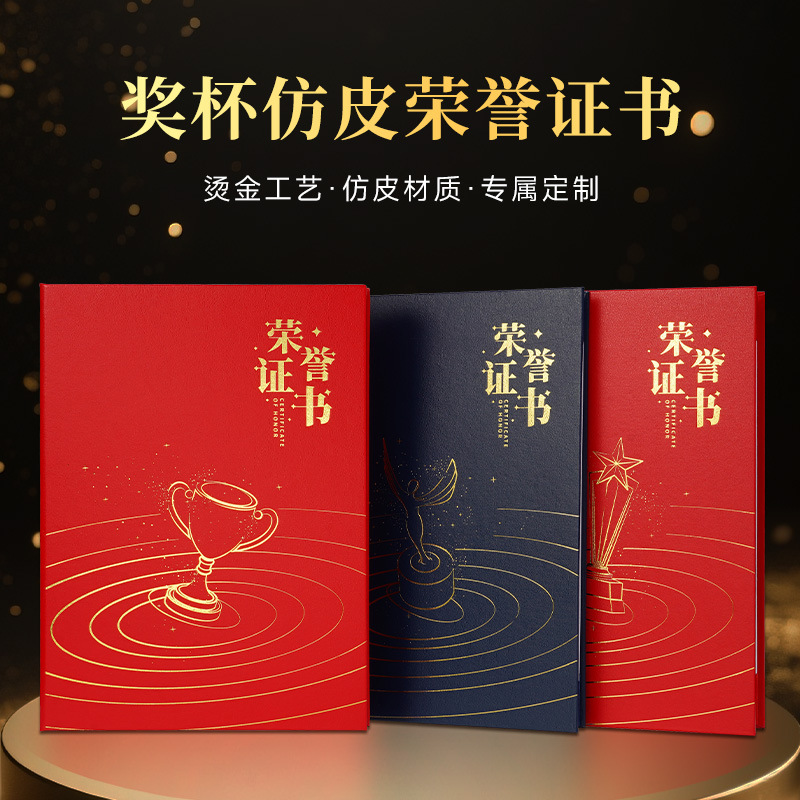 胜杯奖杯荣誉证书定制A4颁奖获奖证书外壳烫金定做表彰奖状纸打印