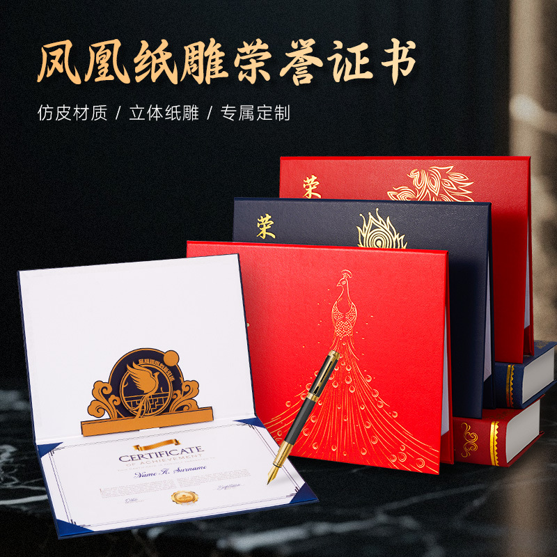 A4 立体フェニックス名誉証明書カスタマイズされた賞状レザーシェル賞受賞証明書カスタマイズされた国家トレンドスタイル封筒