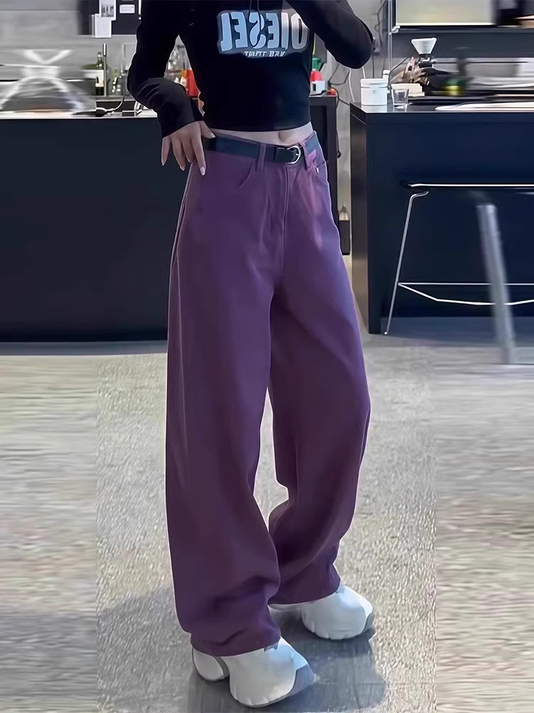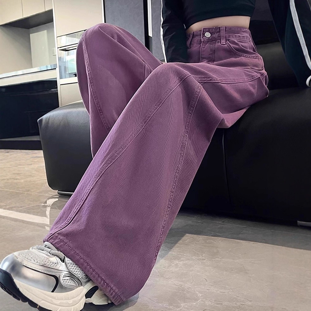 紫色工装阔腿牛仔裤女秋季2025新款今年流行高腰显瘦宽松弯刀裤子