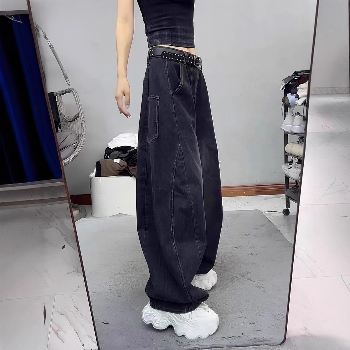 美式高街复古弯刀牛仔裤女秋季辣妹设计感宽松显瘦阔腿拖地长裤潮
