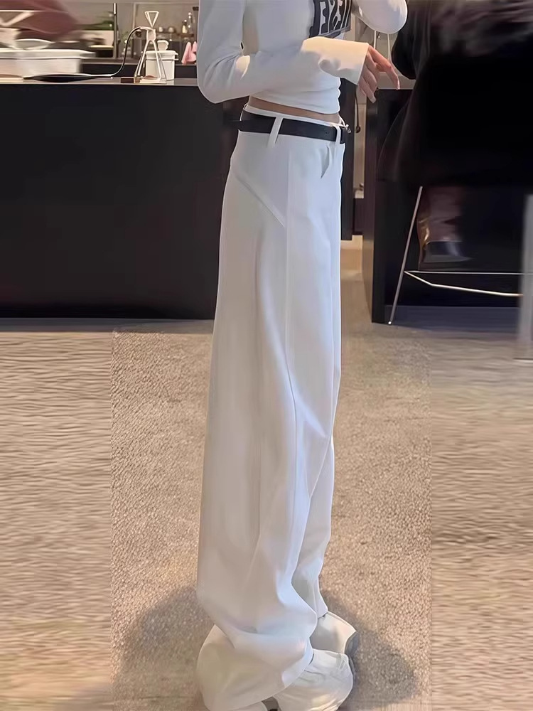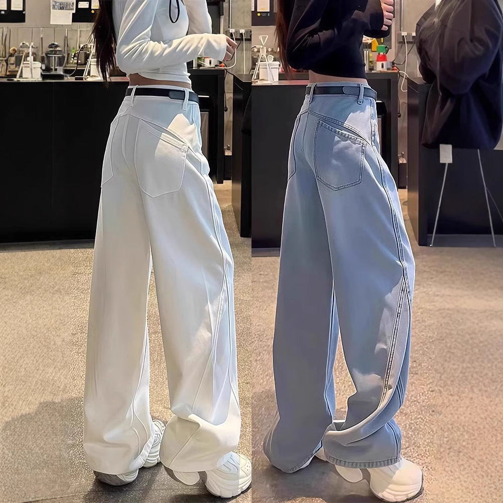 大きいサイズのシンプルな通勤白シミタードレープジーンズ女性のための 2025 秋の新しいルーズスリムワイドレッグパンツ