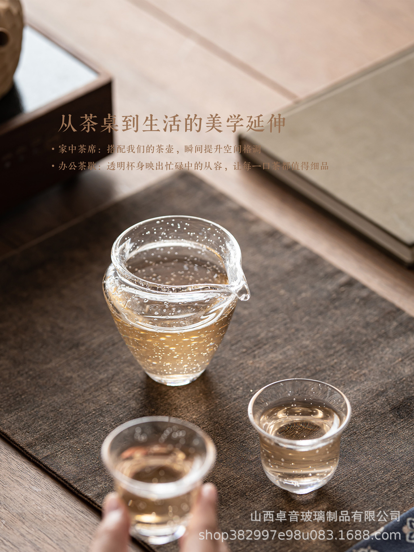 瑠璃茶器透明気泡蓋碗茶杯公杯茶漏セット工夫茶器高顔値軽豪華茶器