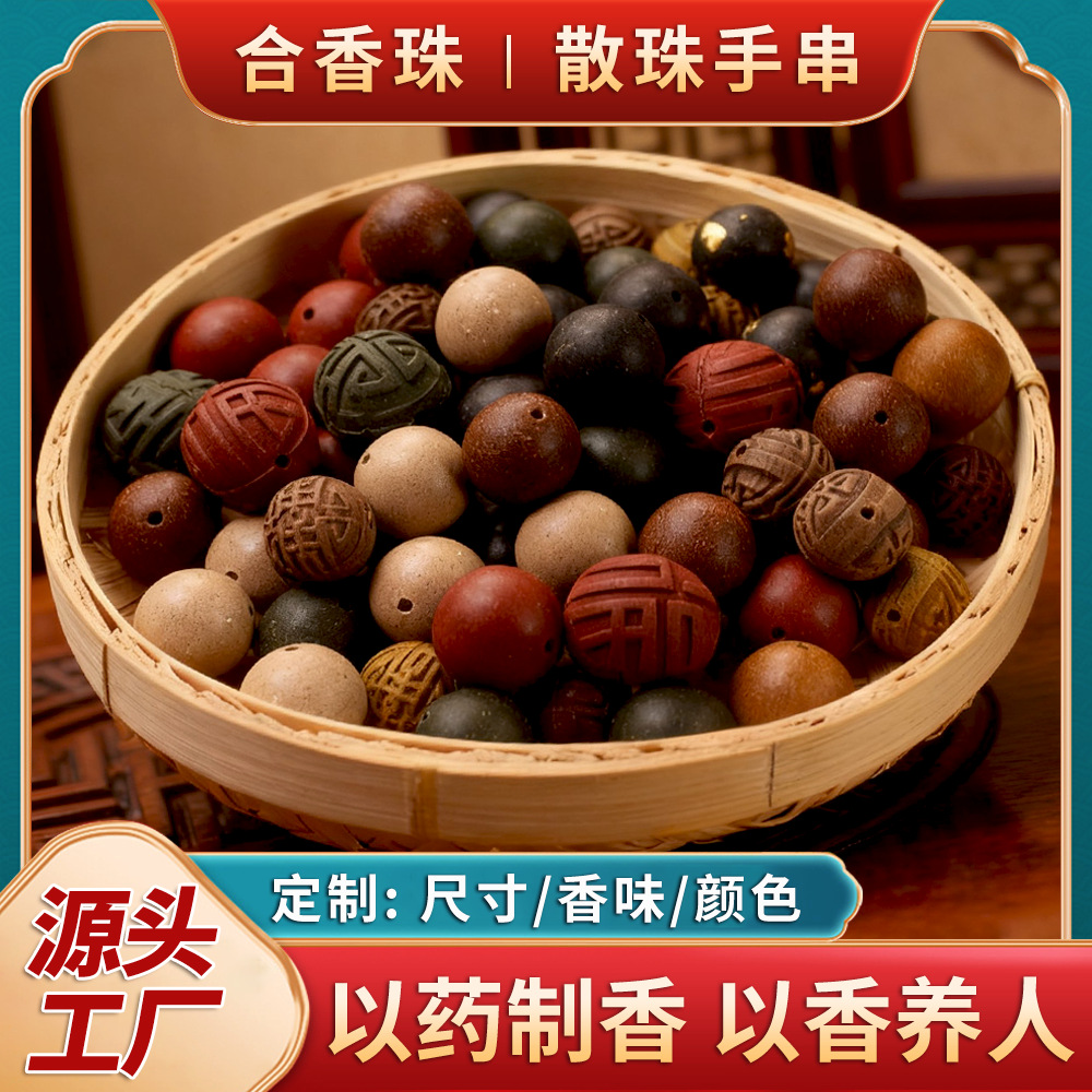 中药合香珠散珠手串diy定制 古法手工炮制养生文玩佛珠药香珠批发